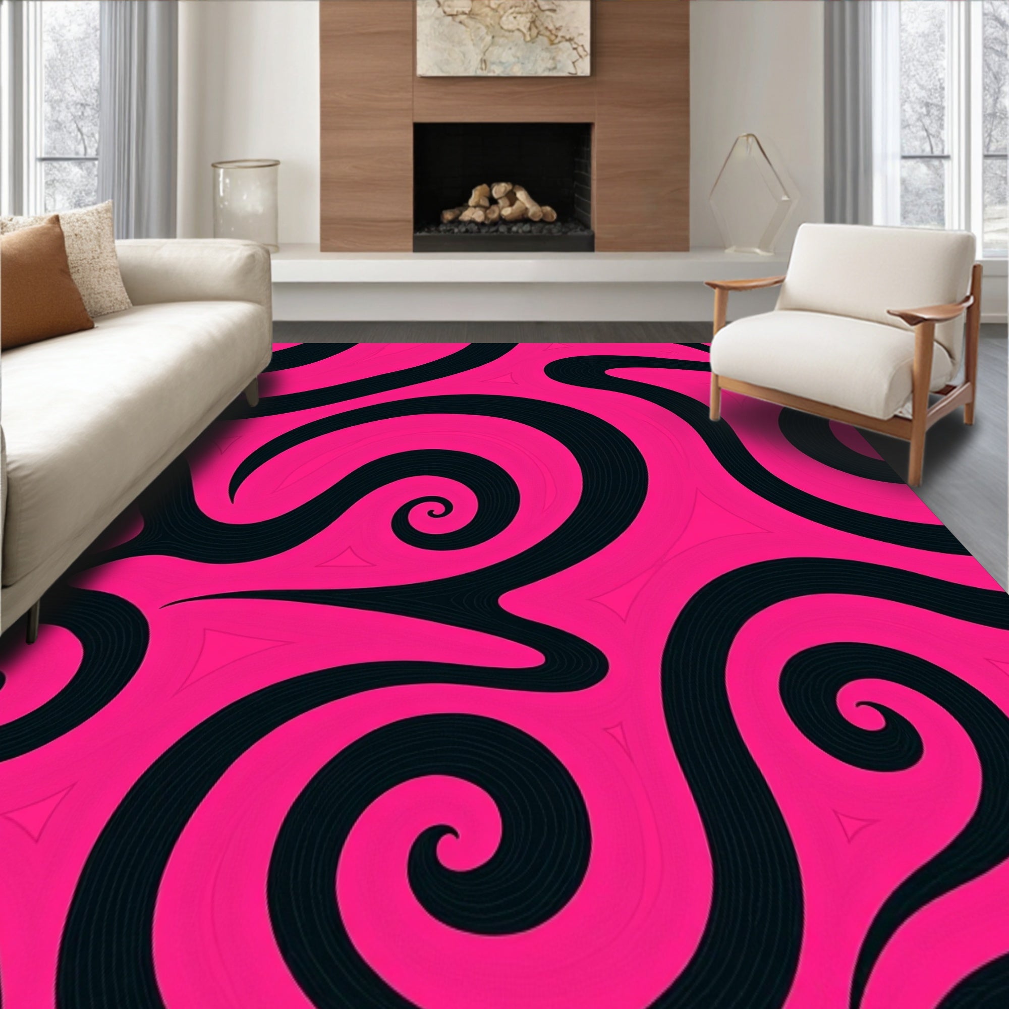 Flatwoven High Traffic Area Rug, Luxurious Midnight Swirl Abstract Modern, Non Slip, Stain Resistant, Washable Area Rugs for Living Room, Bedroom (Pink) Overview: