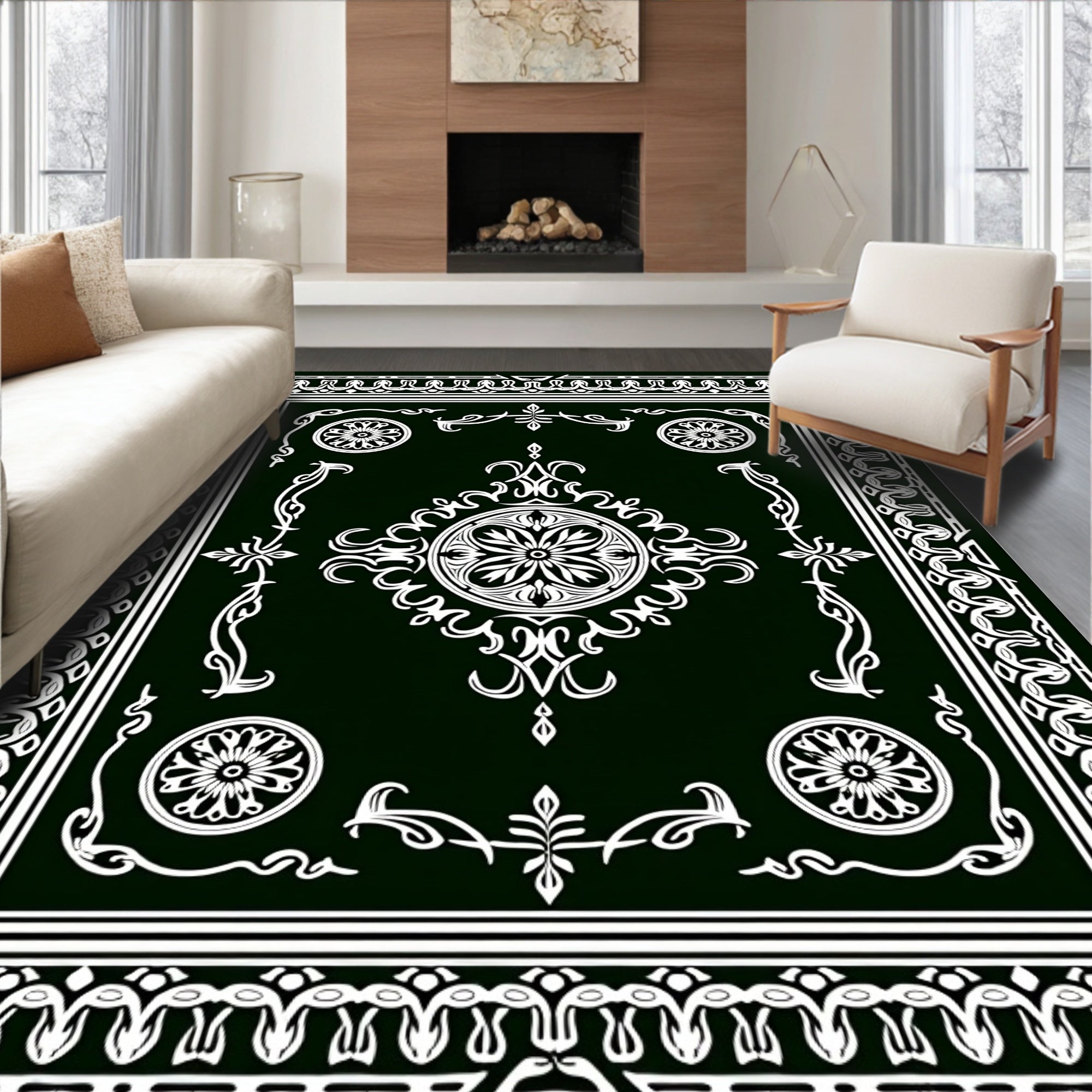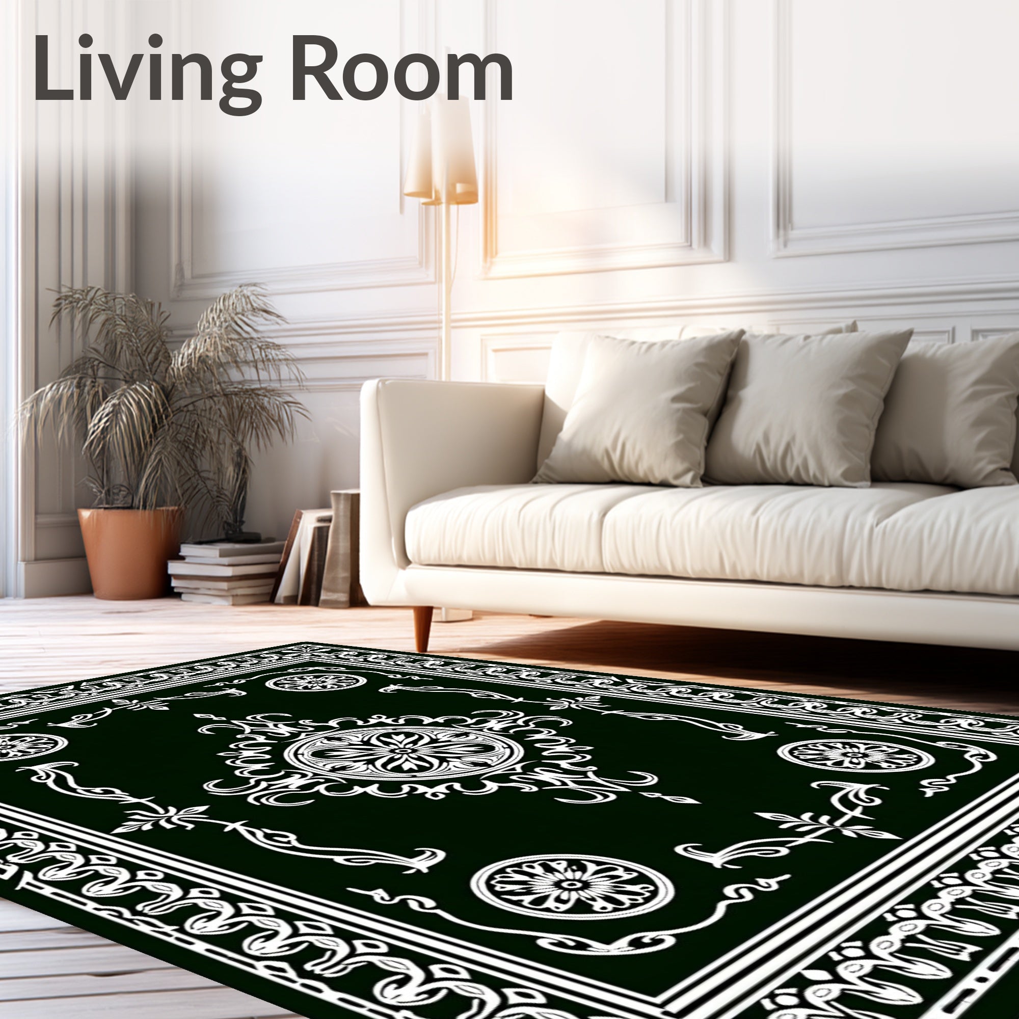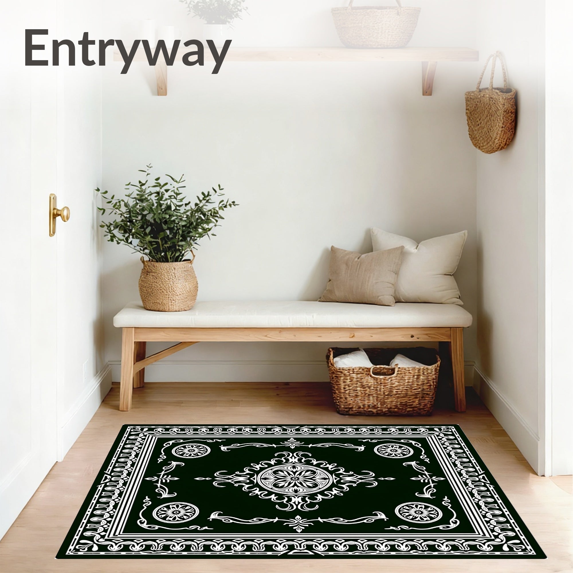 Flatwoven High Traffic Area Rug, Luxurious Vintage Medallion Heritage, Non Slip, Stain Resistant, Washable Area Rugs for Living Room, Bedroom (Black) Overview: