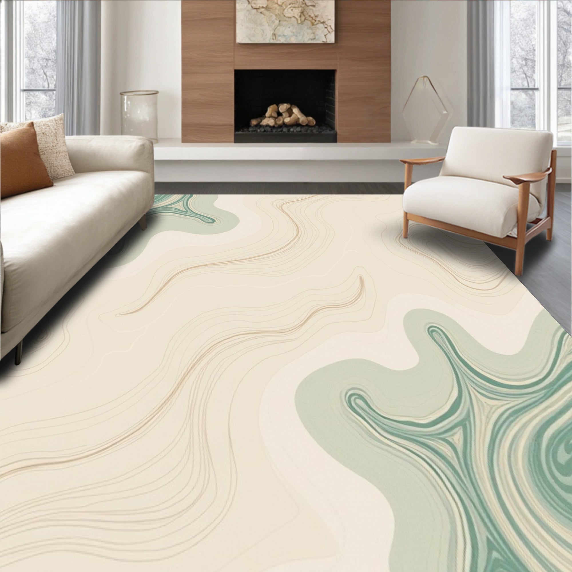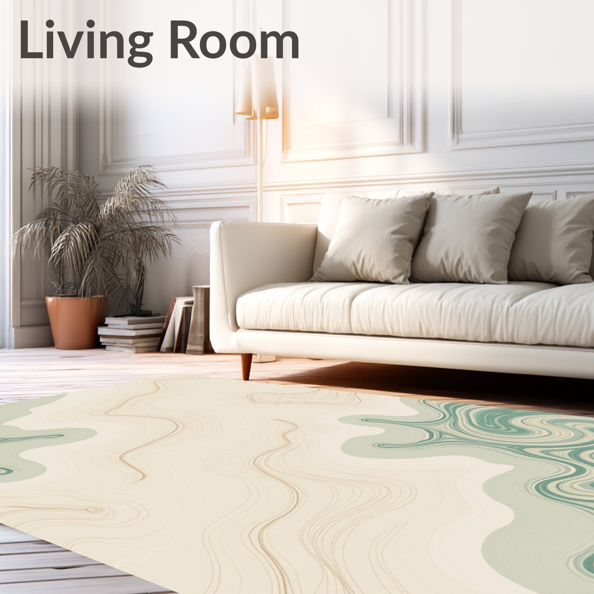 Flatwoven High Traffic Area Rug, Marble Veining Swirl Cloud Formation Luxury Statement Floor, Non Slip, Stain Resistant, Washable Area Rugs for Living Room, Bedroom (Green) Overview: