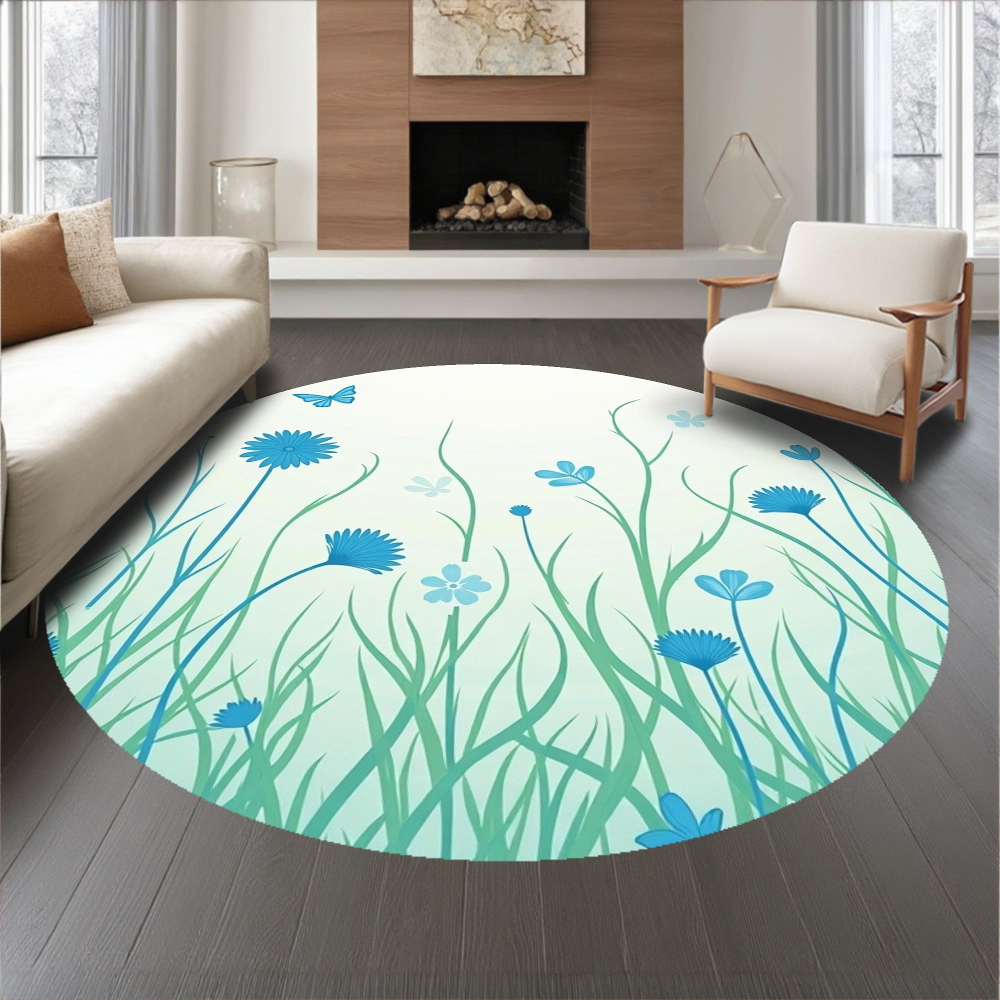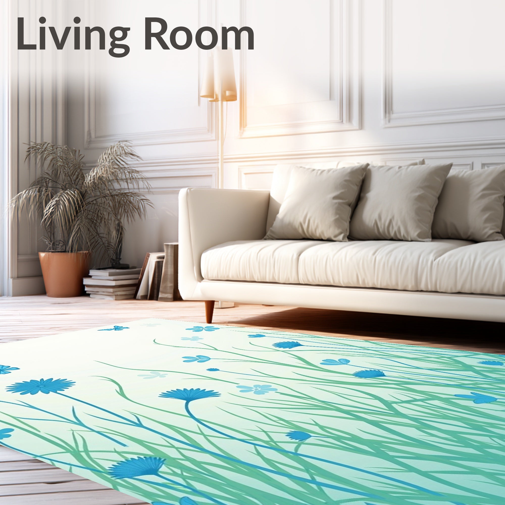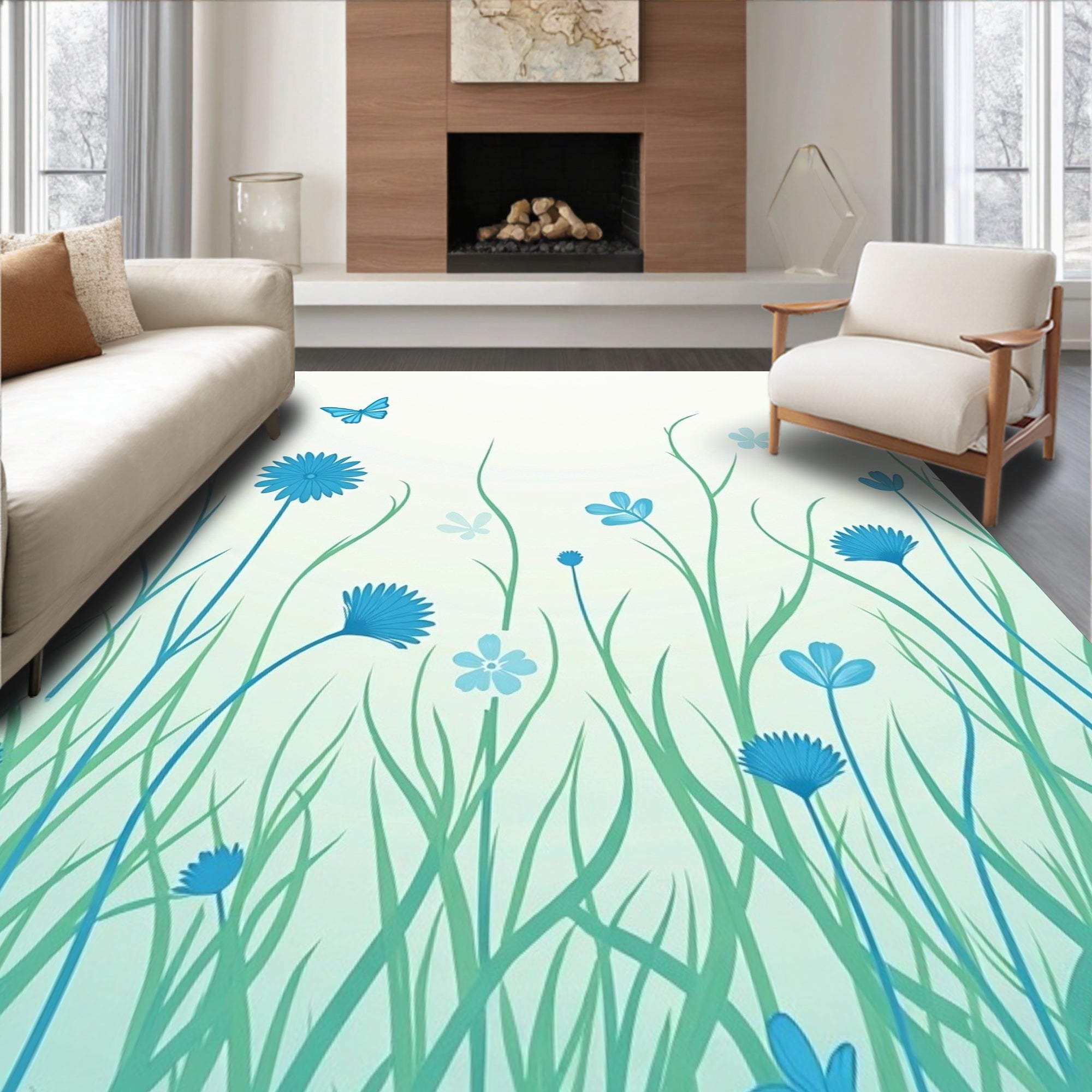 Flatwoven High Traffic Area Rug, Meadow Whisper Artistic, Non Slip, Stain Resistant, Washable Area Rugs for Living Room, Bedroom (Blue) Overview: