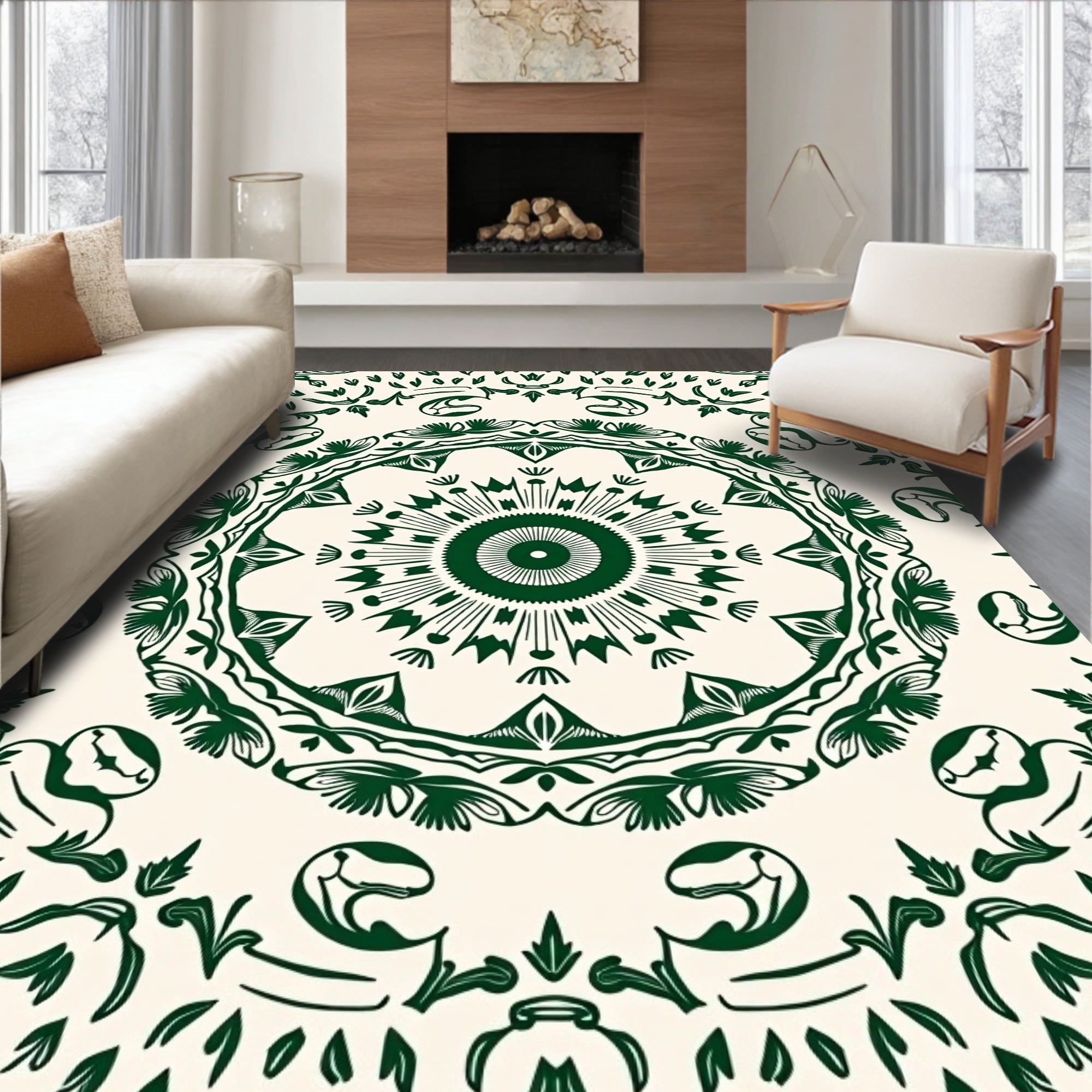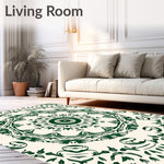 Flatwoven High Traffic Area Rug, Medallion Abstract with Intricate Flourish Details, Non Slip, Stain Resistant, Washable Area Rugs for Living Room, Bedroom (Green) Overview: