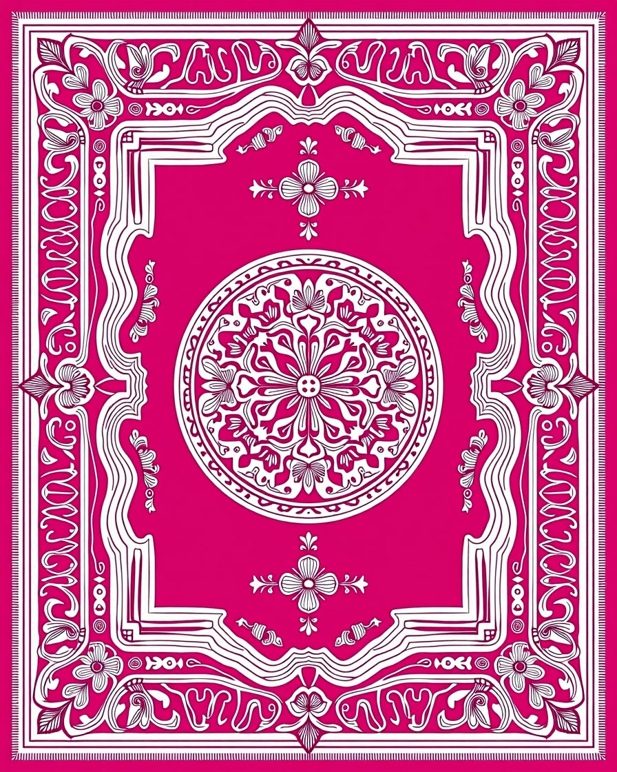 Medallion Decorative Accent with Ornate Floral Motifs (Pink)