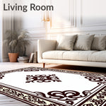 Medallion Motif Damask Indoor Floor Covering (Brown)
