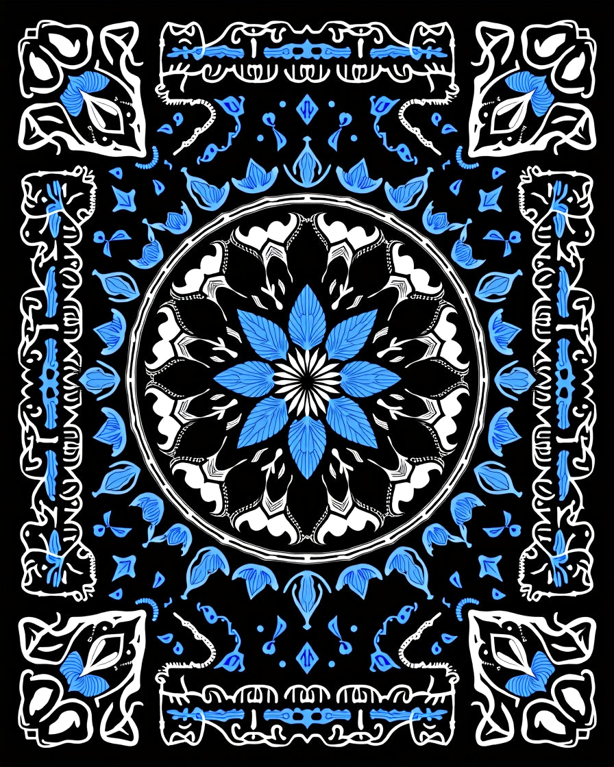 Medallion Shag with Intricate Petal Motifs (Black)