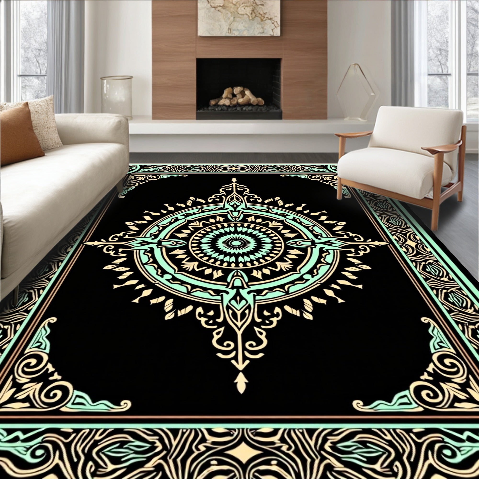Medallion Symmetrical Ornate Traditional (Black)