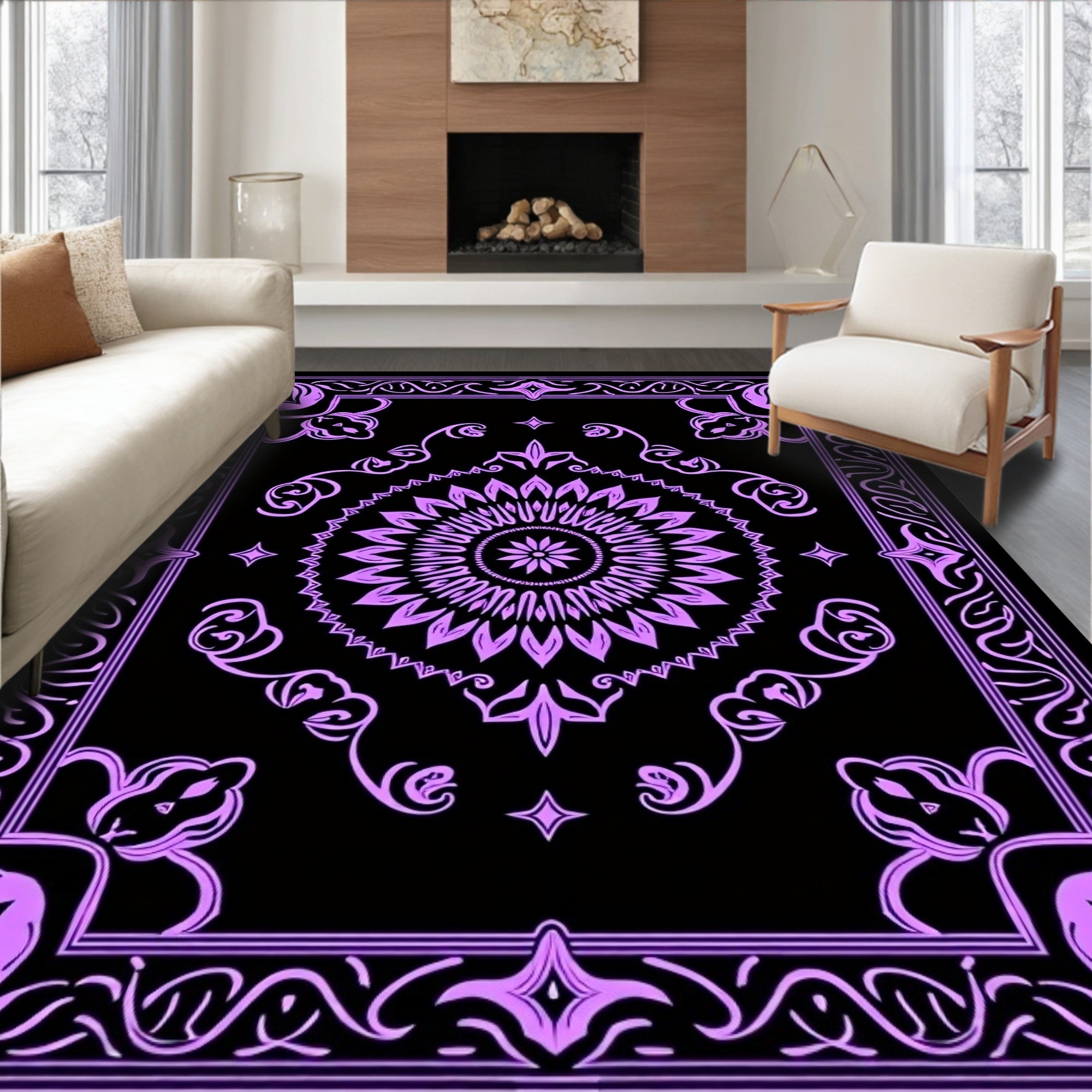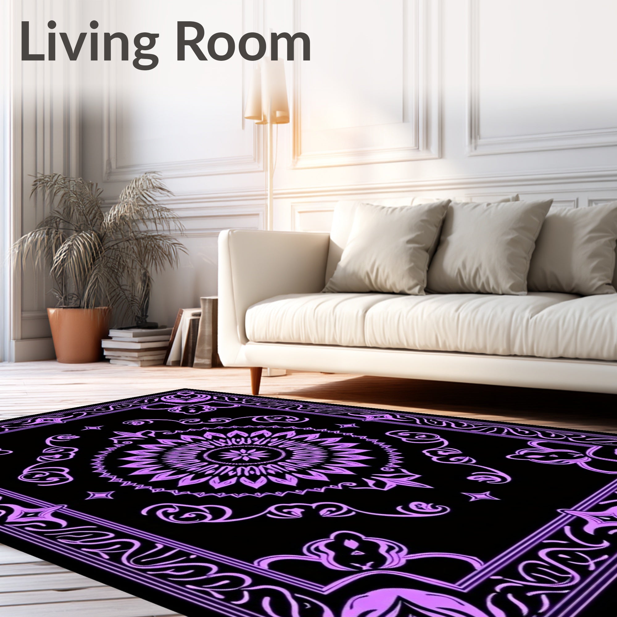 Flatwoven High Traffic Area Rug, Medallion with Intricate Symmetrical Lotus Motifs, Non Slip, Stain Resistant, Washable Area Rugs for Living Room, Bedroom (Black) Overview: