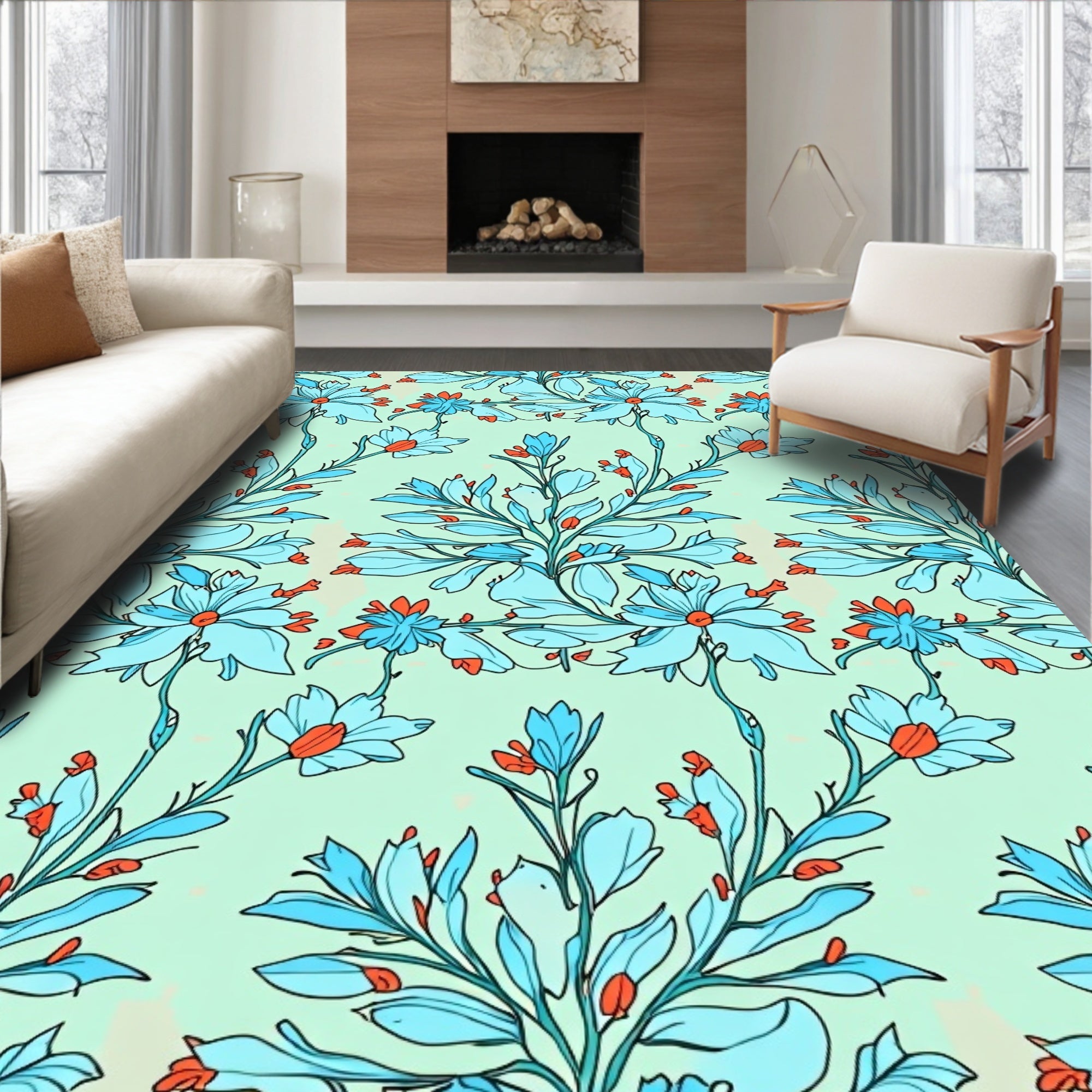 Flatwoven High Traffic Area Rug, Mediterranean Mosaic Floral, Non Slip, Stain Resistant, Washable Area Rugs for Living Room, Bedroom (Green) Overview: