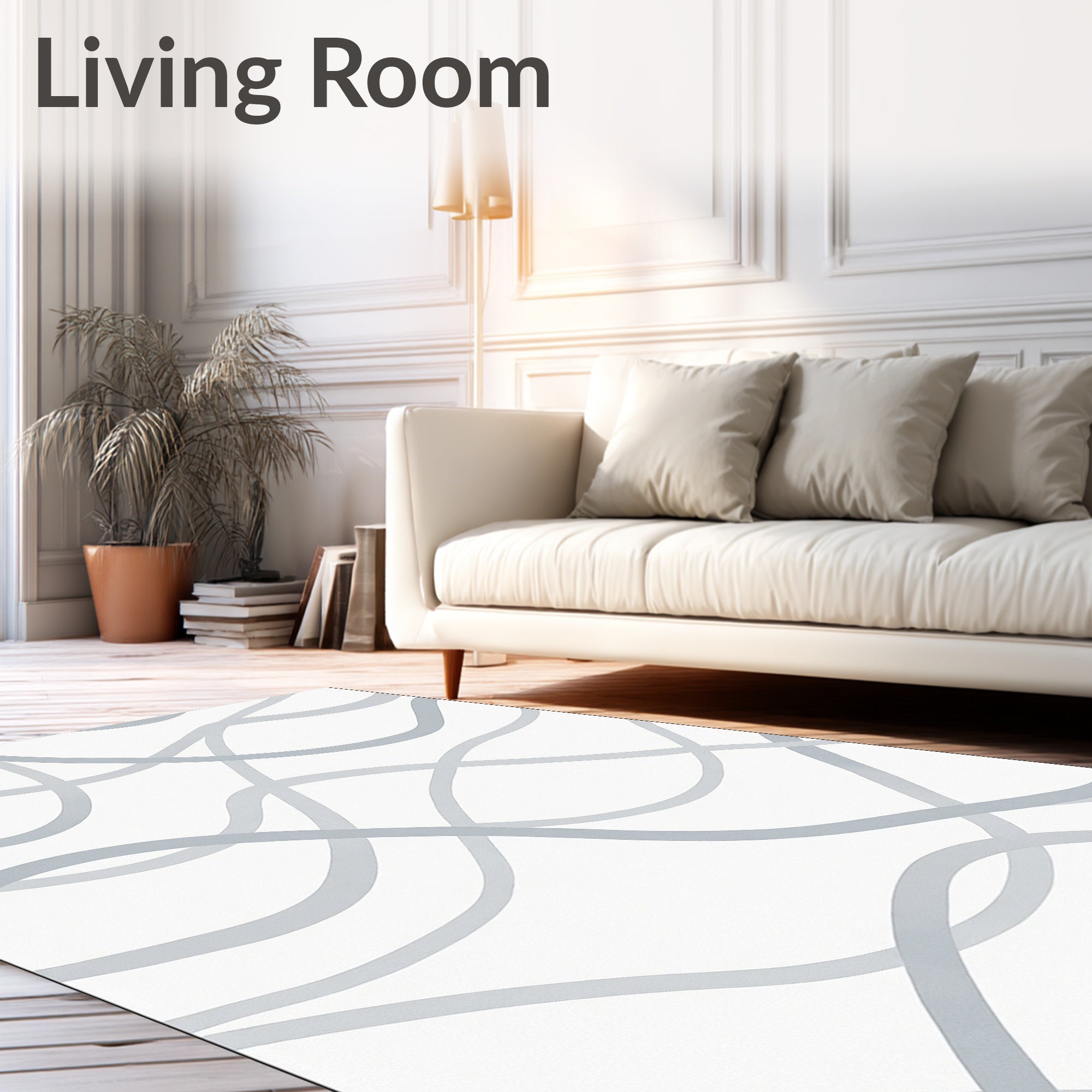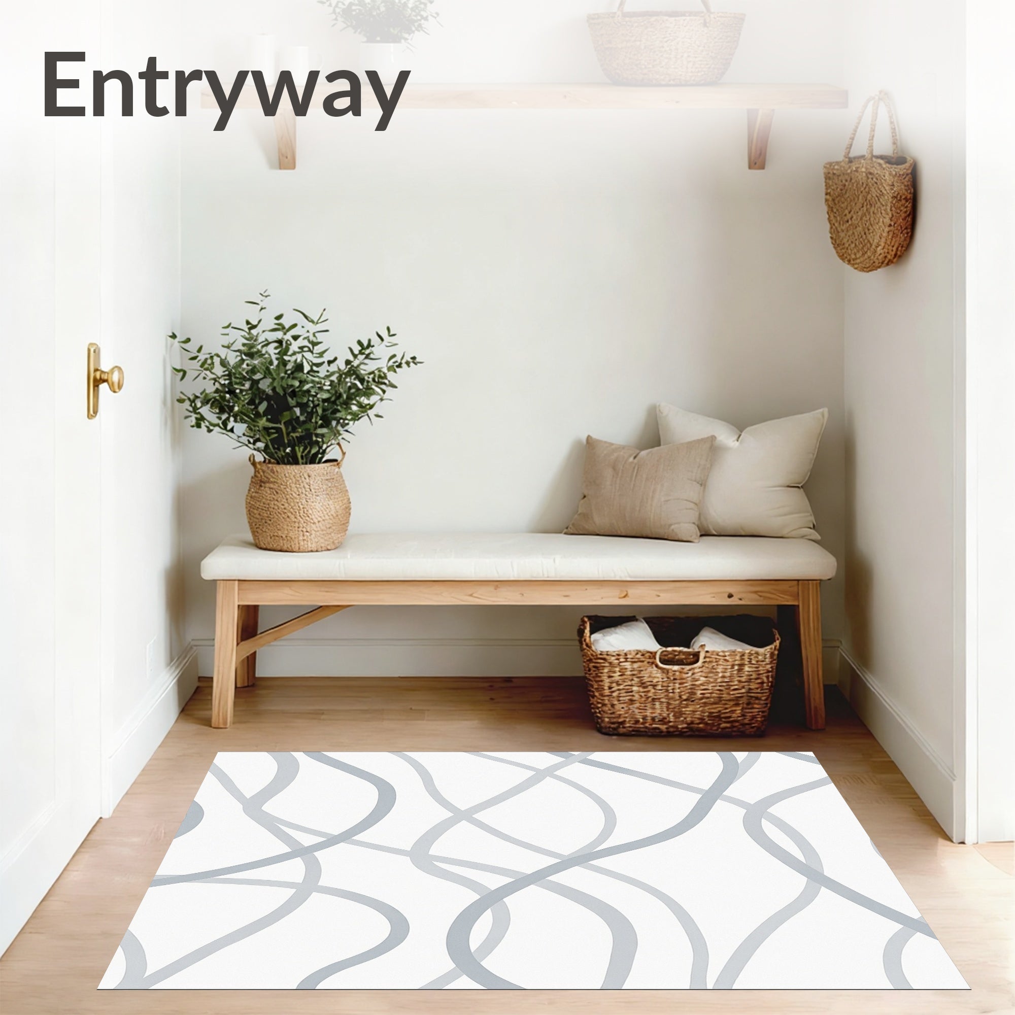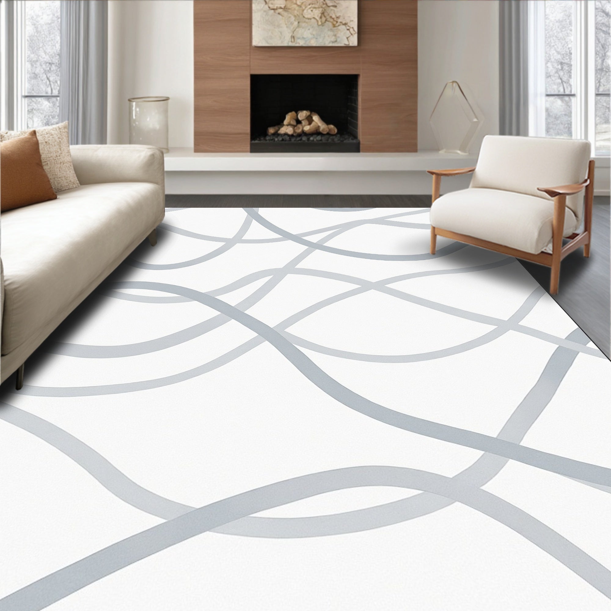 Flatwoven High Traffic Area Rug, Minimalist Interlocking Waveforms with Gradient Transitions, Non Slip, Stain Resistant, Washable Area Rugs for Living Room, Bedroom (Gray) Overview: