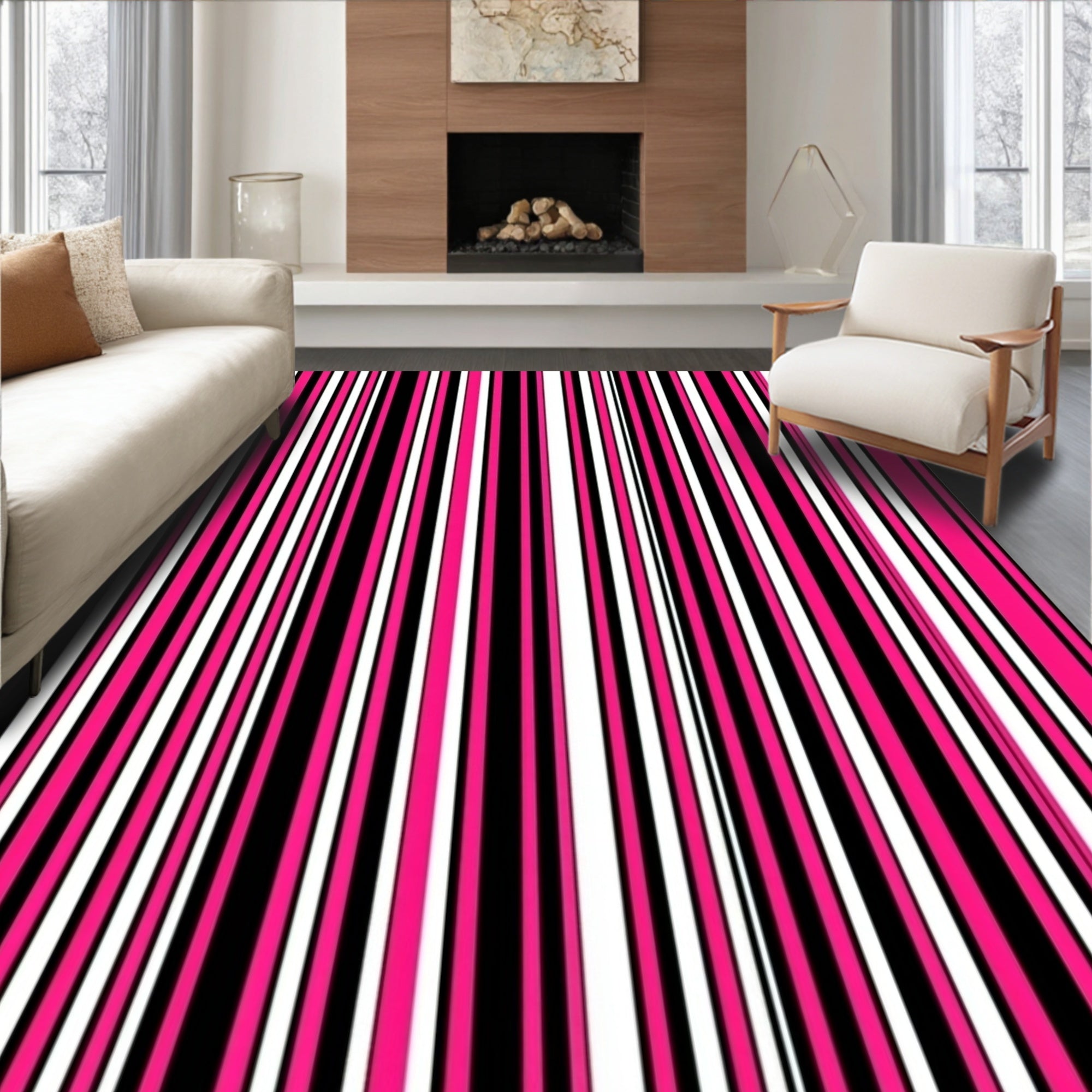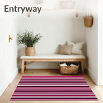 Flatwoven High Traffic Area Rug, Minimalist Stripe Mosaic with Contrasting Parallel Lines and Negative Space, Non Slip, Stain Resistant, Washable Area Rugs for Living Room, Bedroom (Pink) Overview: