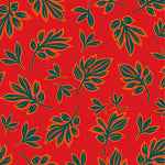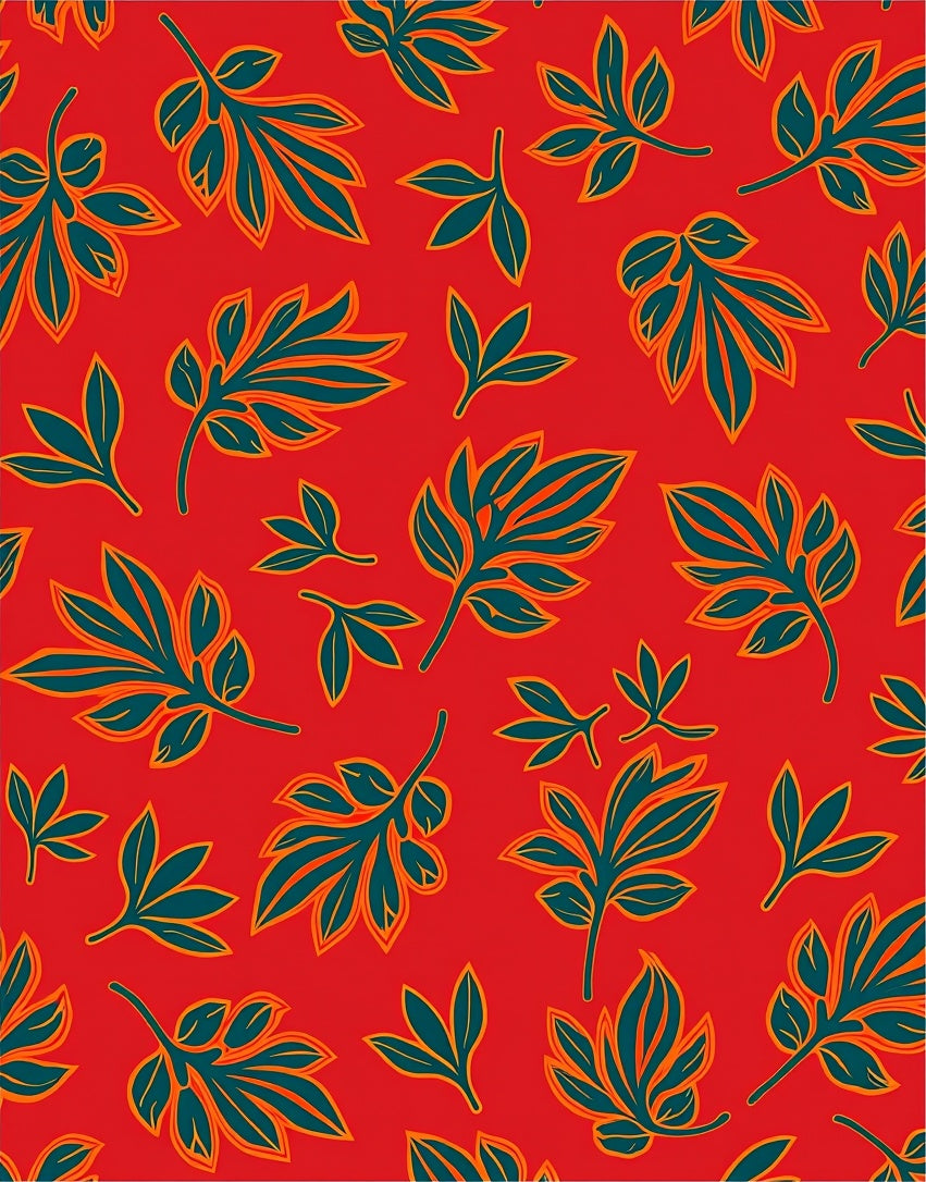 Modern Boho Leaf Scrollwork with Stylized Floral Bursts (Red)