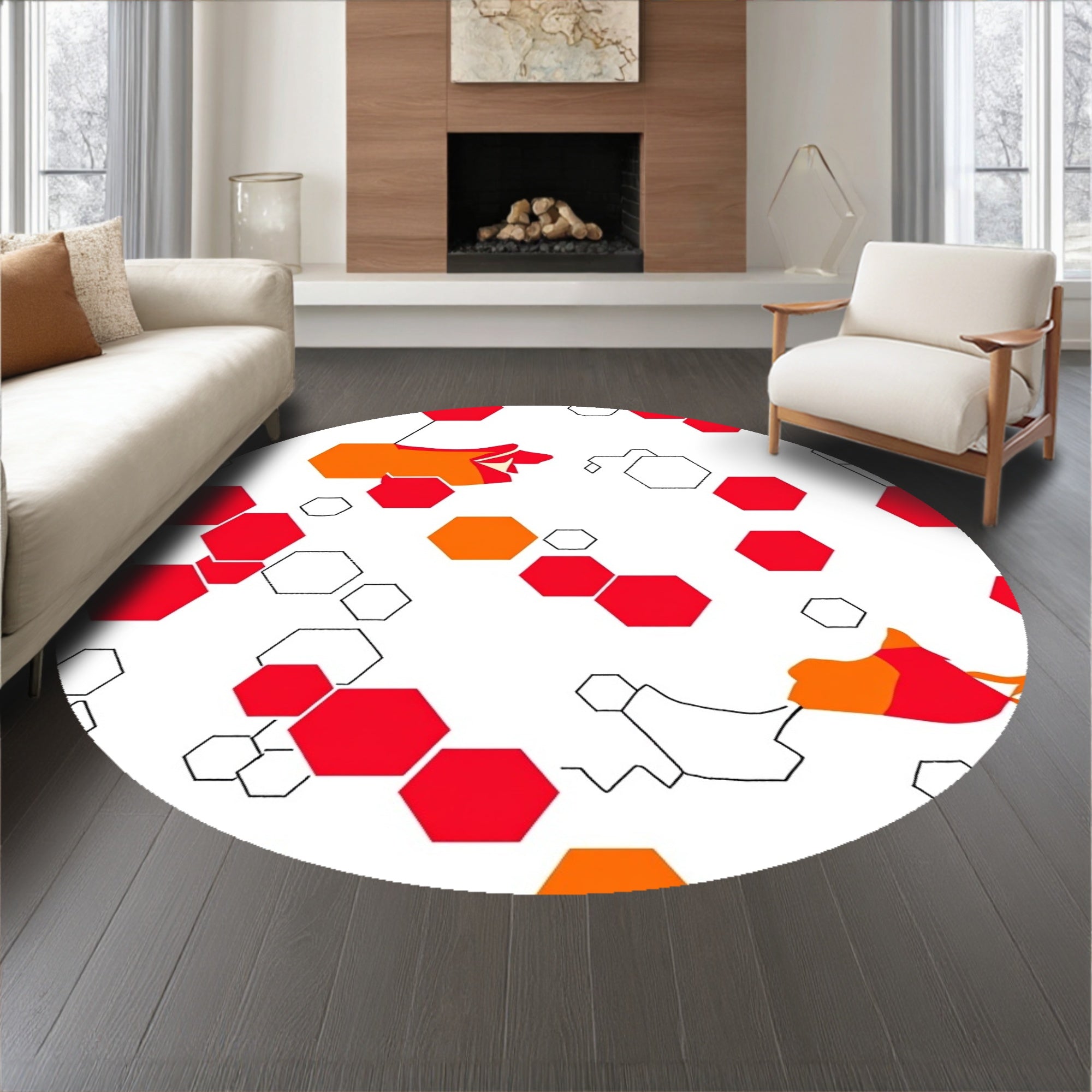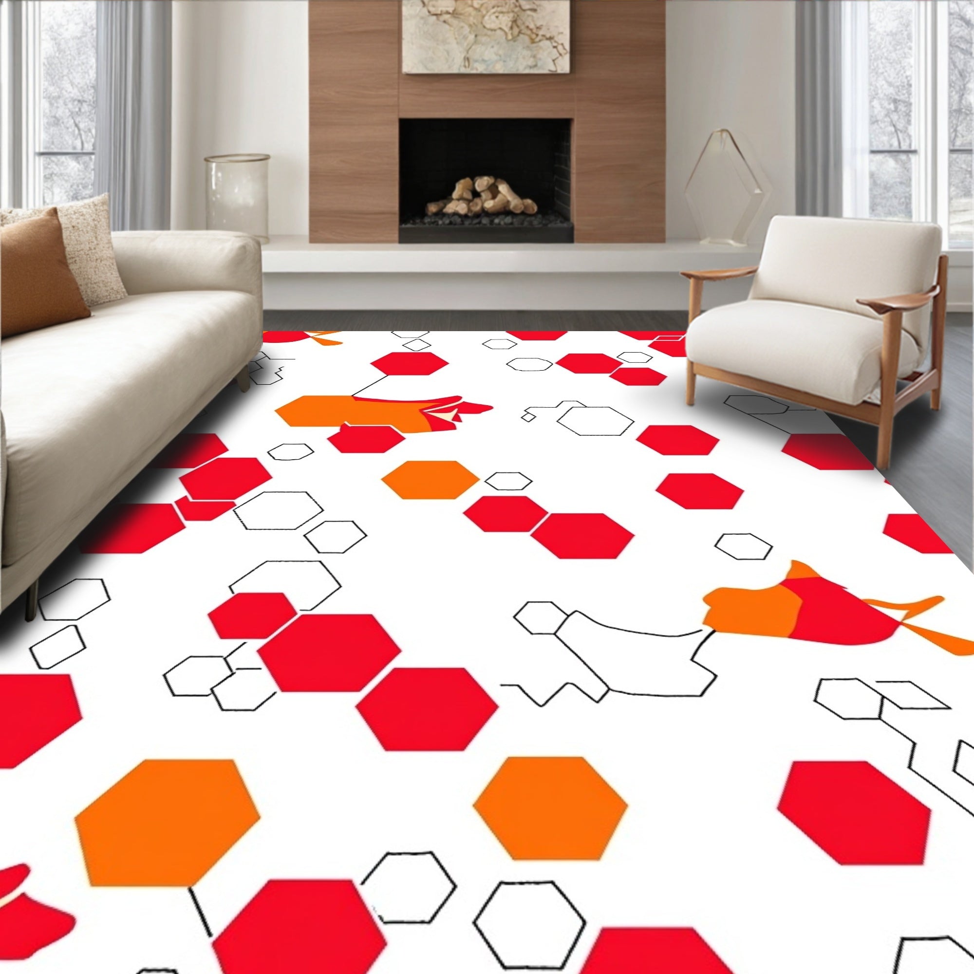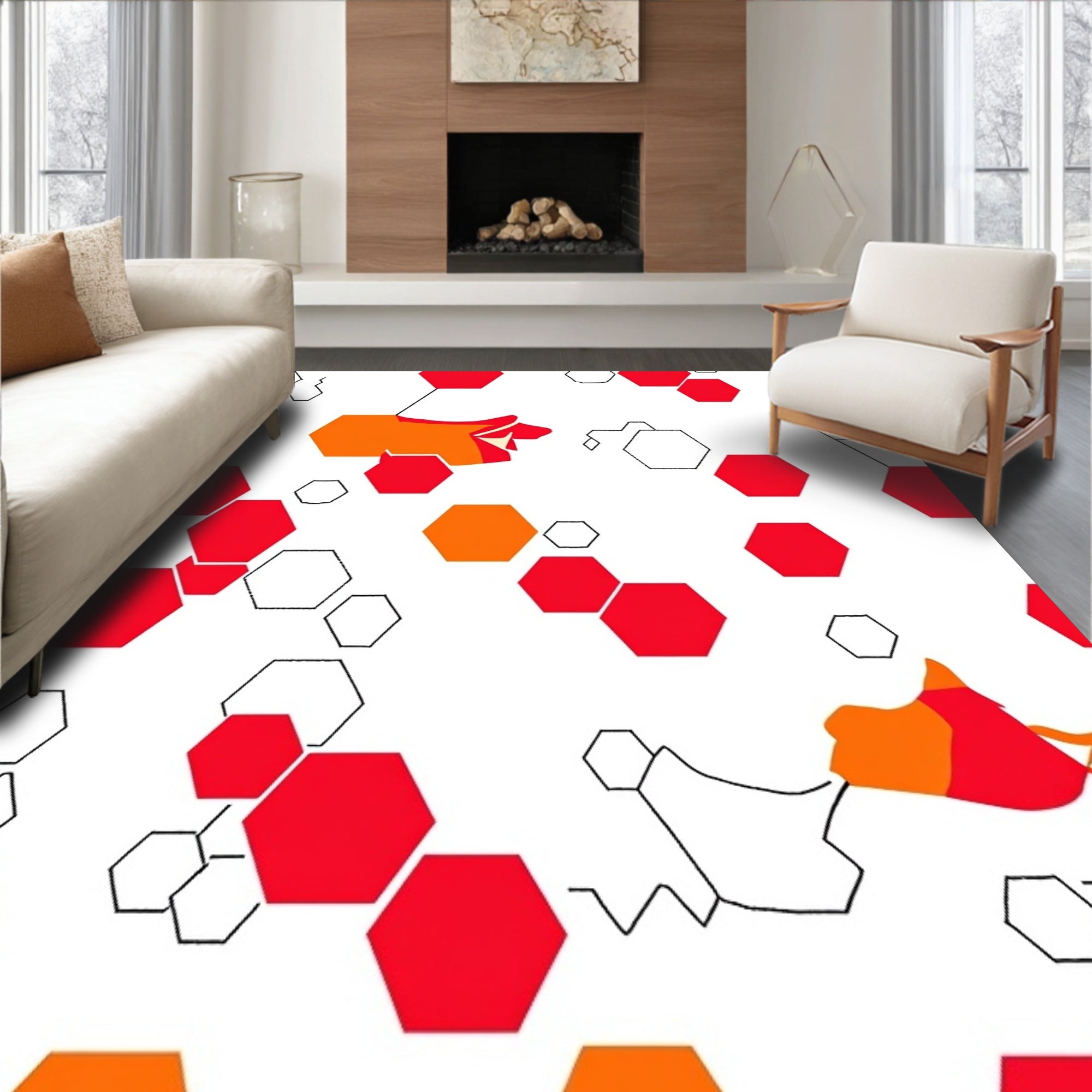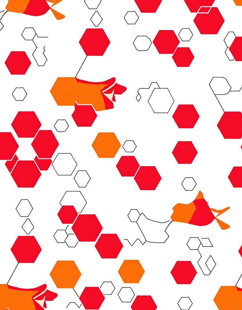 Modern Hexagonal Pile Textile with Bold Interlocking Honeycomb (Red)