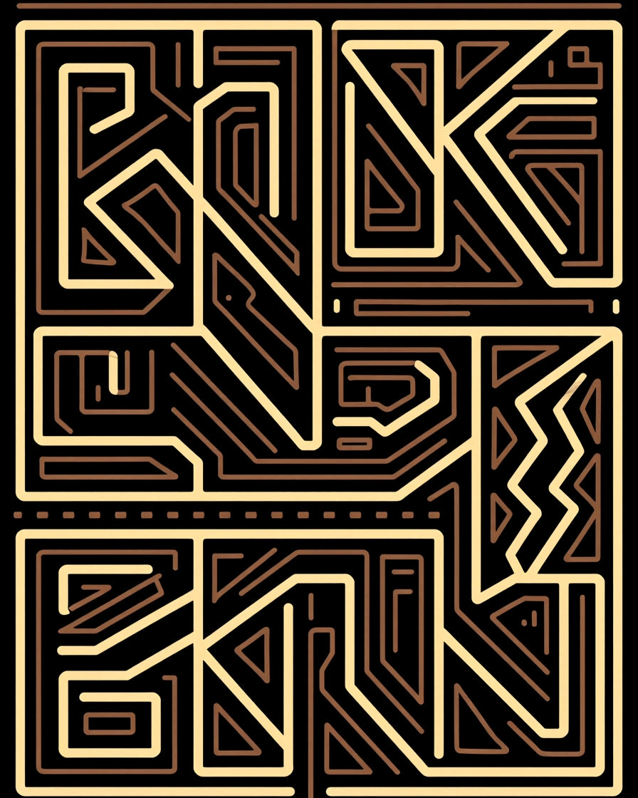 Modern Interlocking Maze Motif with Angular Paths and Golden Accents (Black)