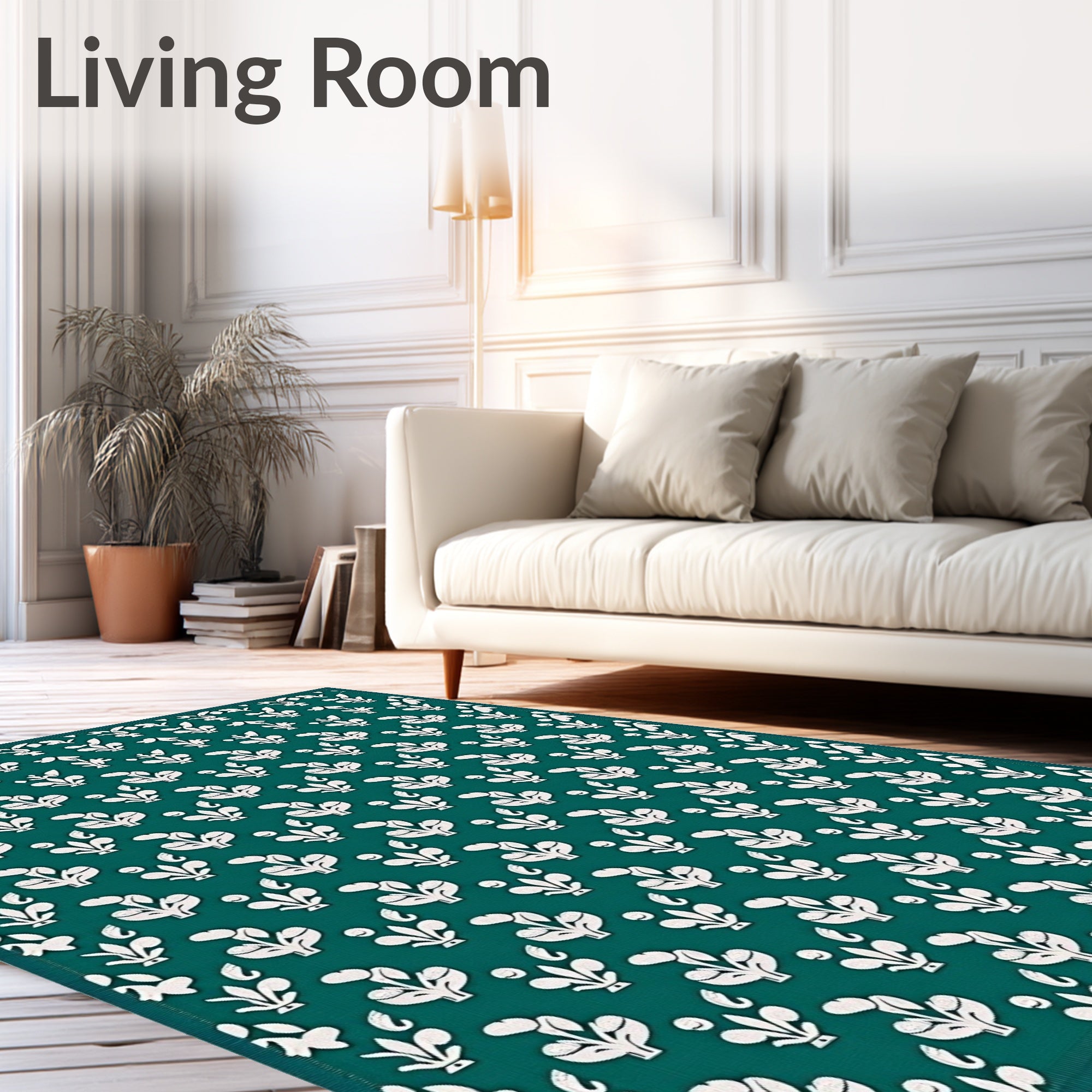 Flatwoven High Traffic Area Rug, Modern Interlocking Vine Lattice Floral, Non Slip, Stain Resistant, Washable Area Rugs for Living Room, Bedroom (Green) Overview: