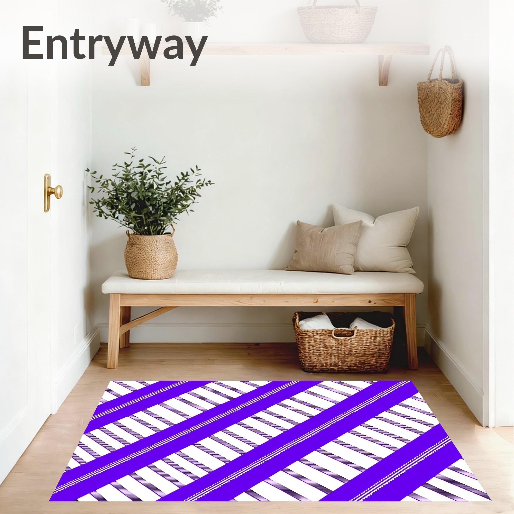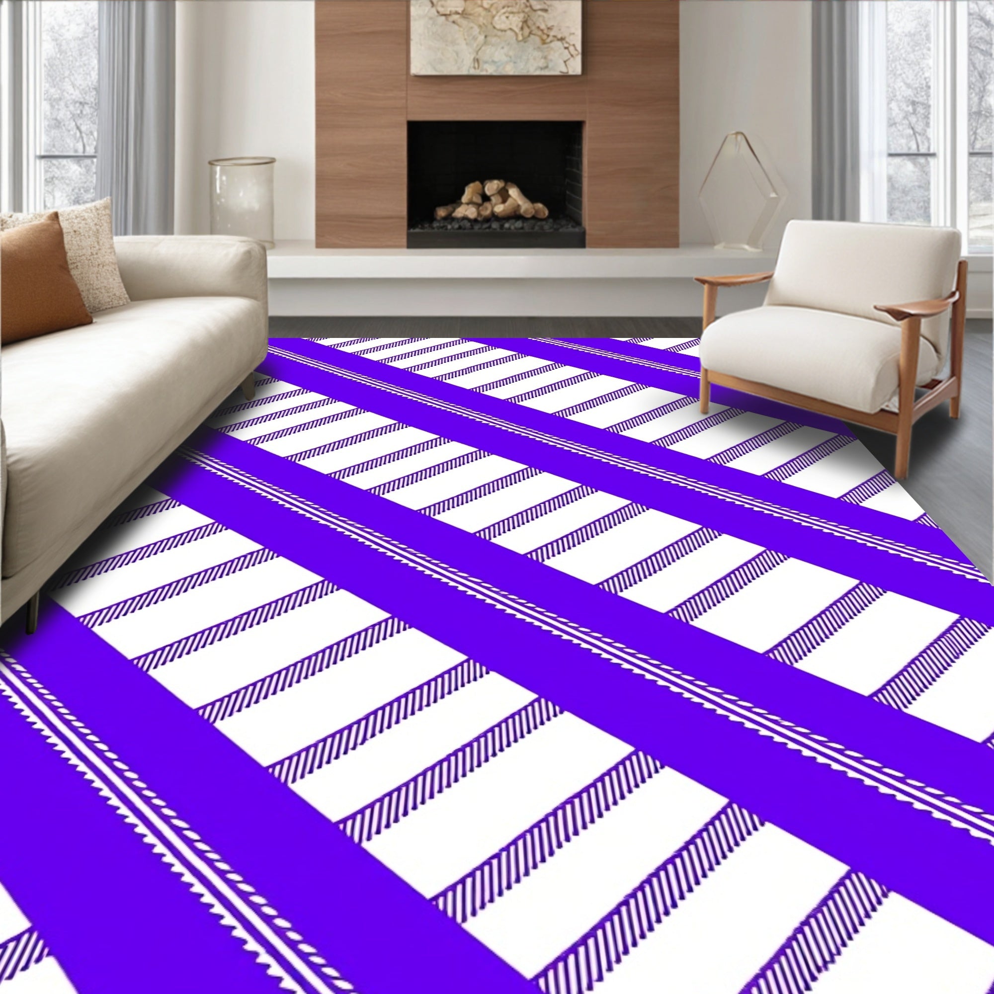 Flatwoven High Traffic Area Rug, Modern Plaid Inspired Tartan with Contemporary Flair, Non Slip, Stain Resistant, Washable Area Rugs for Living Room, Bedroom (Purple) Overview: