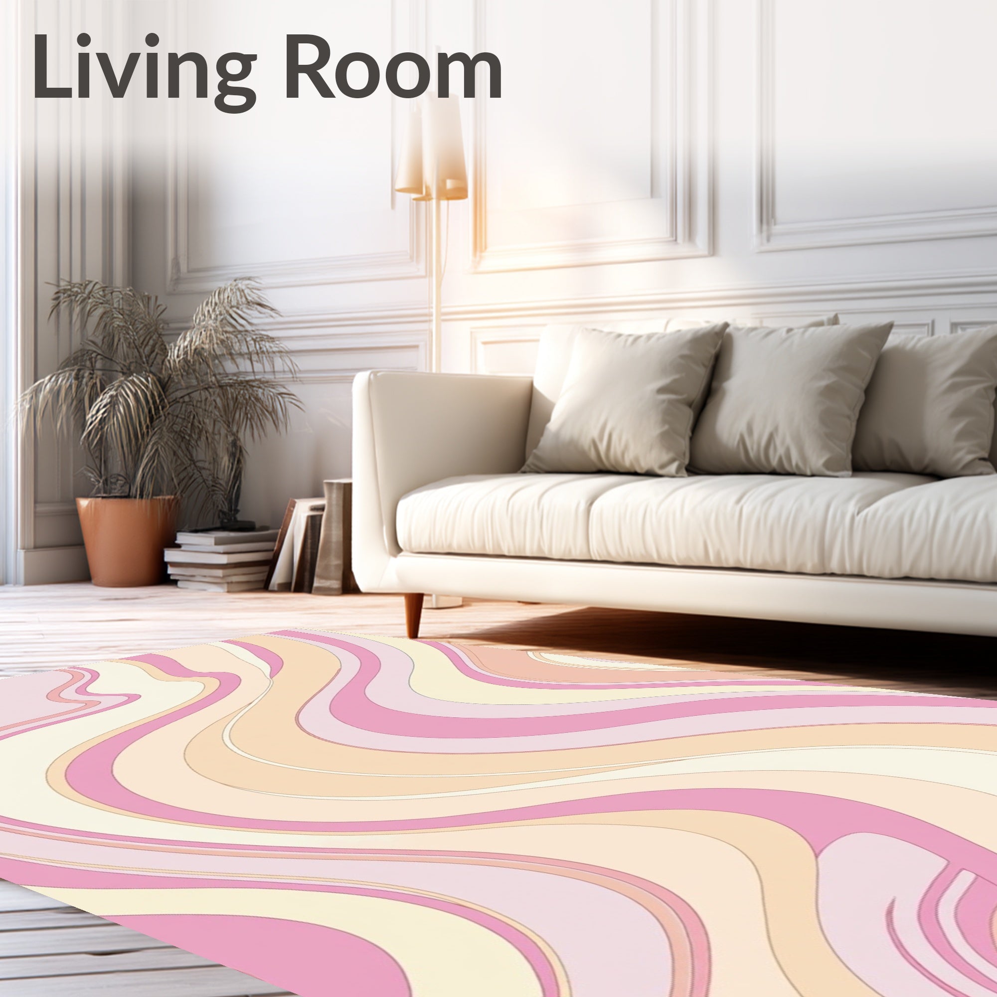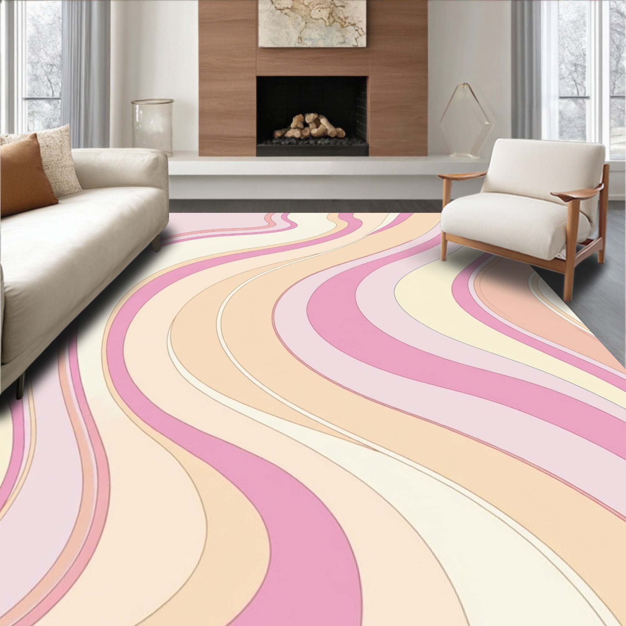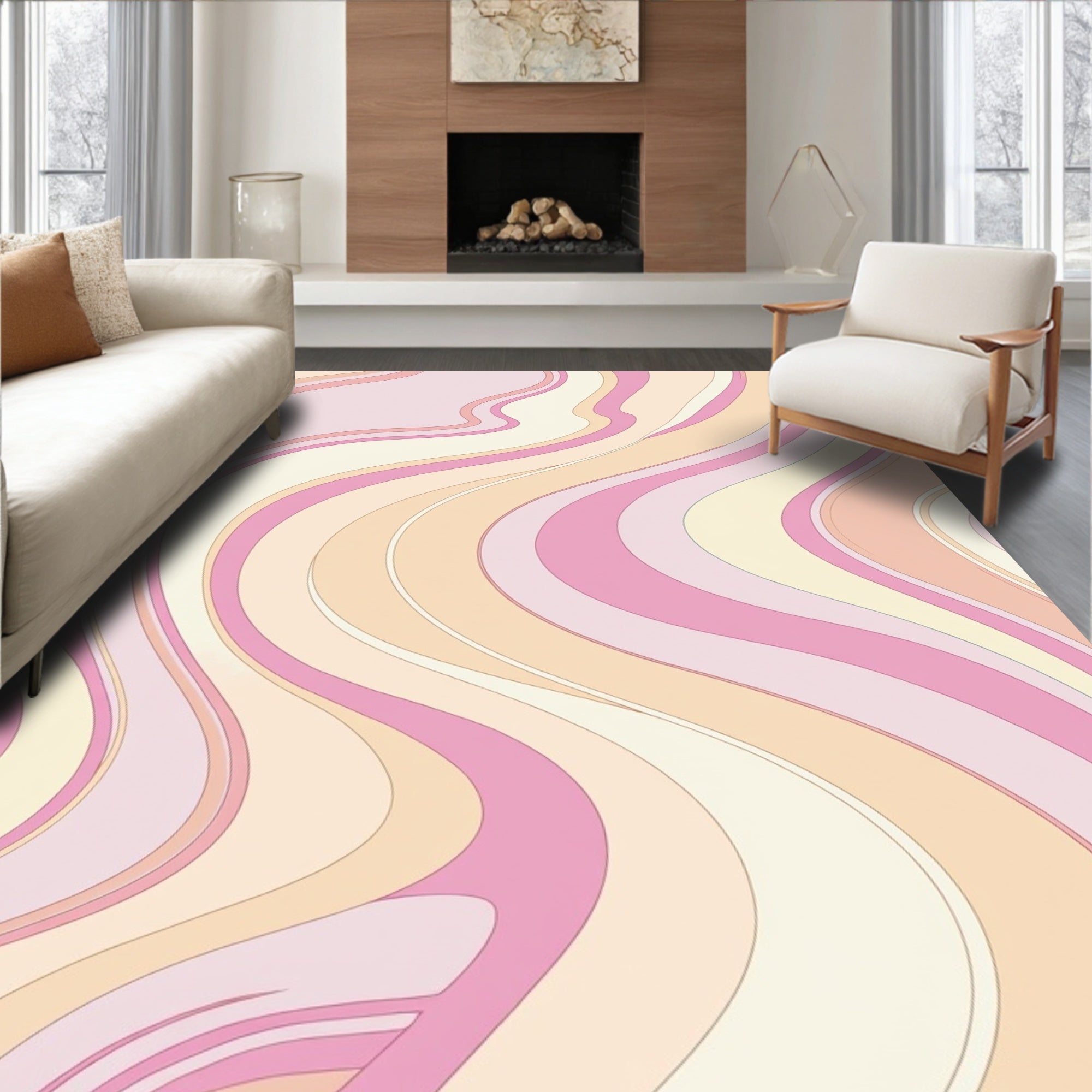 Flatwoven High Traffic Area Rug, Modern Plush Wave Motif with Soothing Undulating Design, Non Slip, Stain Resistant, Washable Area Rugs for Living Room, Bedroom (Pink) Overview: