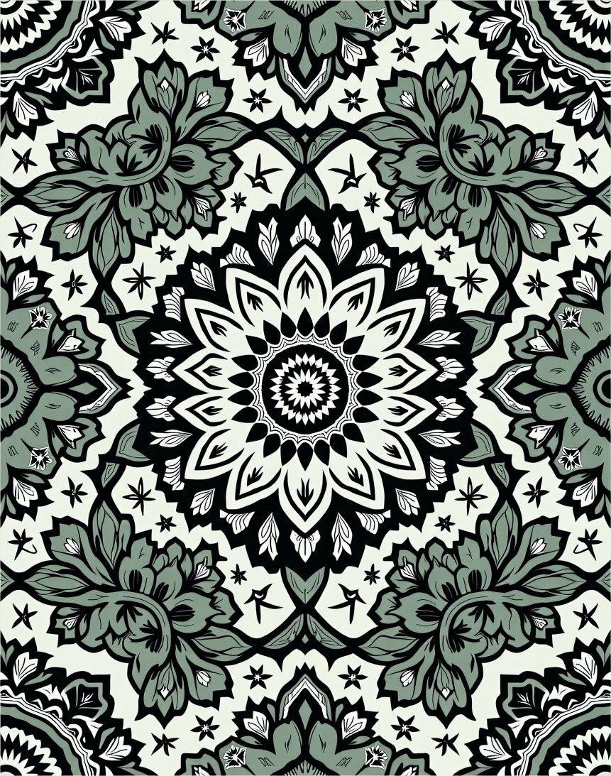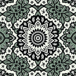 Monochrome Interlocking Floral Medallion Patterned Artwork (Green)