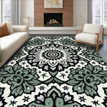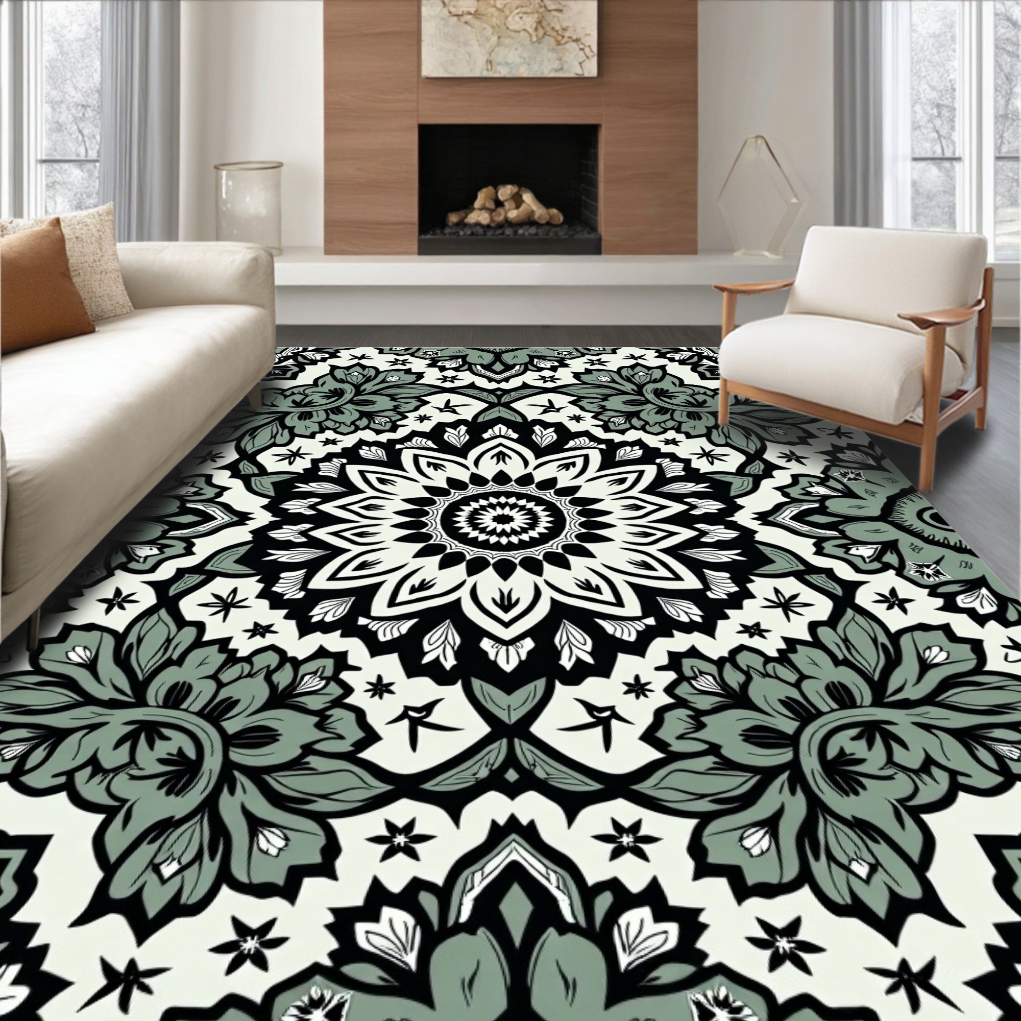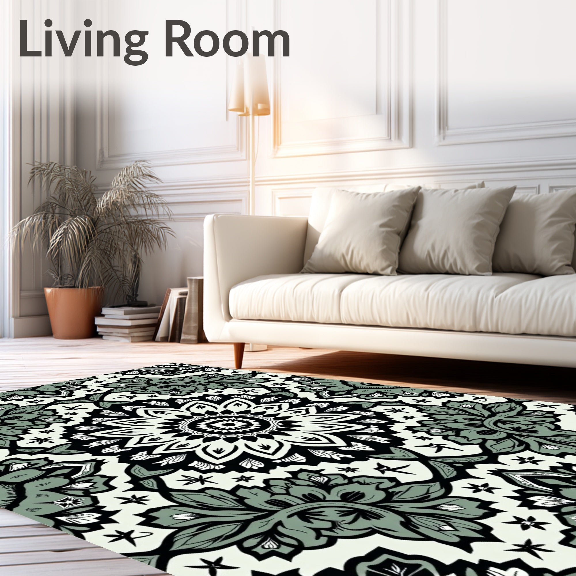 Flatwoven High Traffic Area Rug, Monochrome Interlocking Floral Medallion Patterned Artwork, Non Slip, Stain Resistant, Washable Area Rugs for Living Room, Bedroom (Green) Overview: