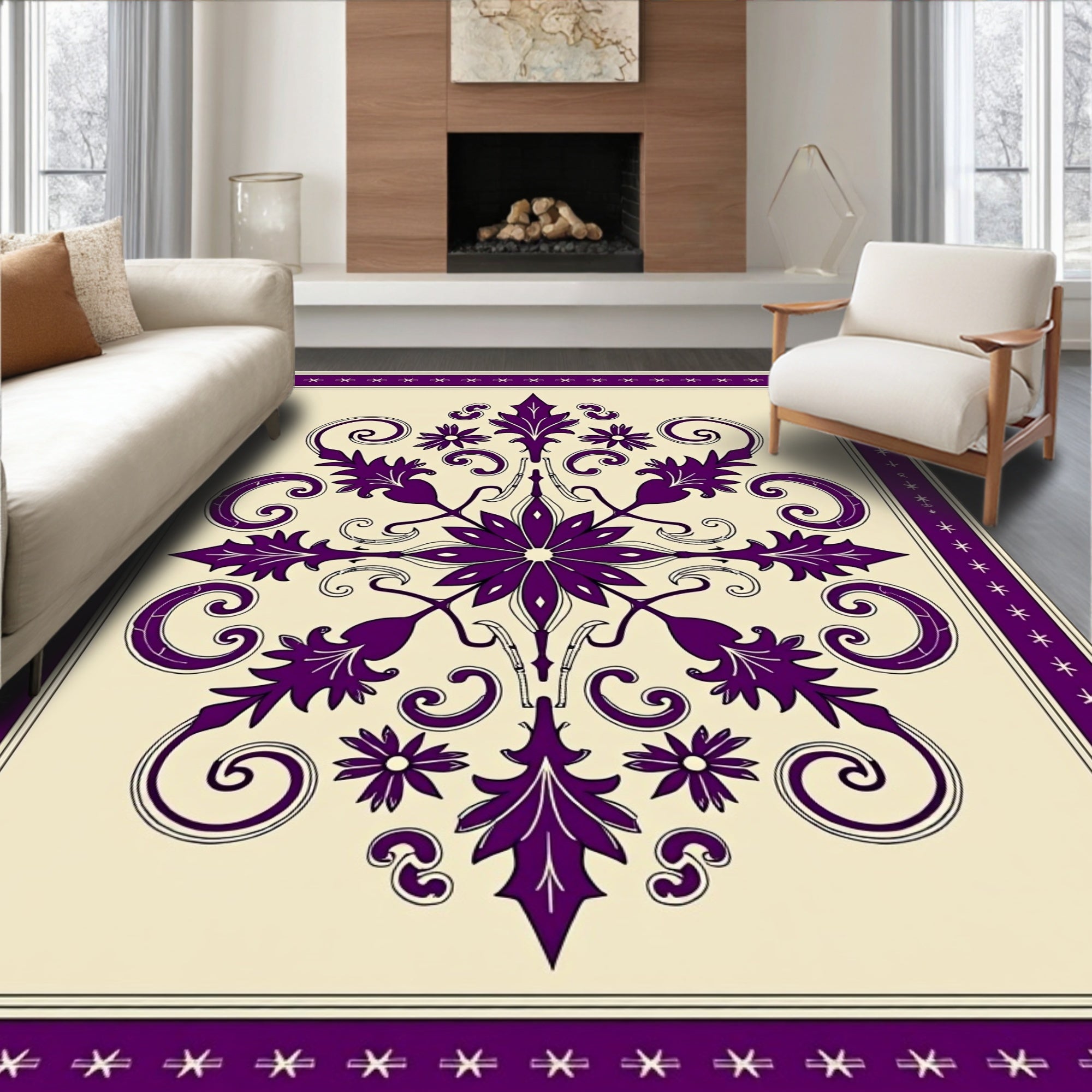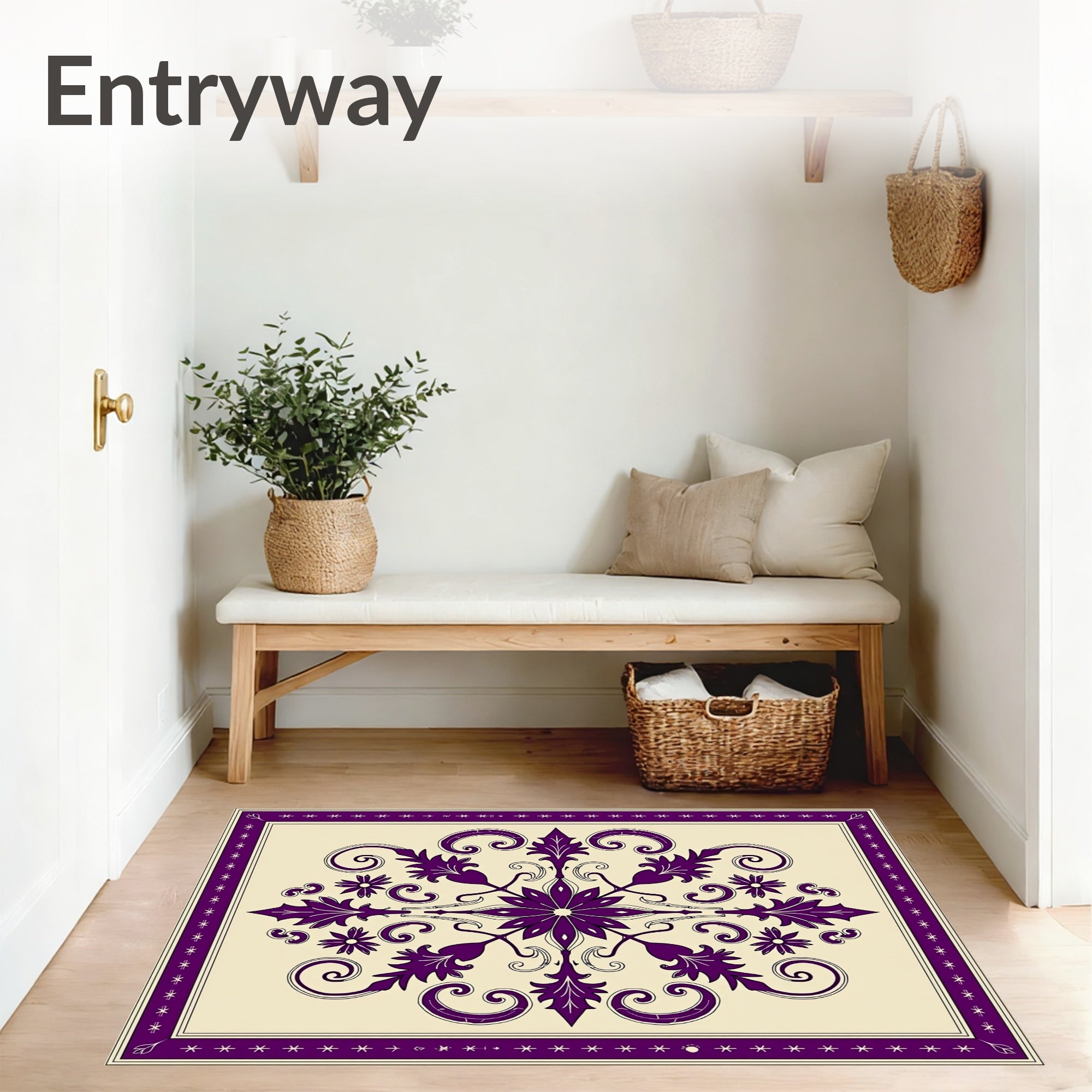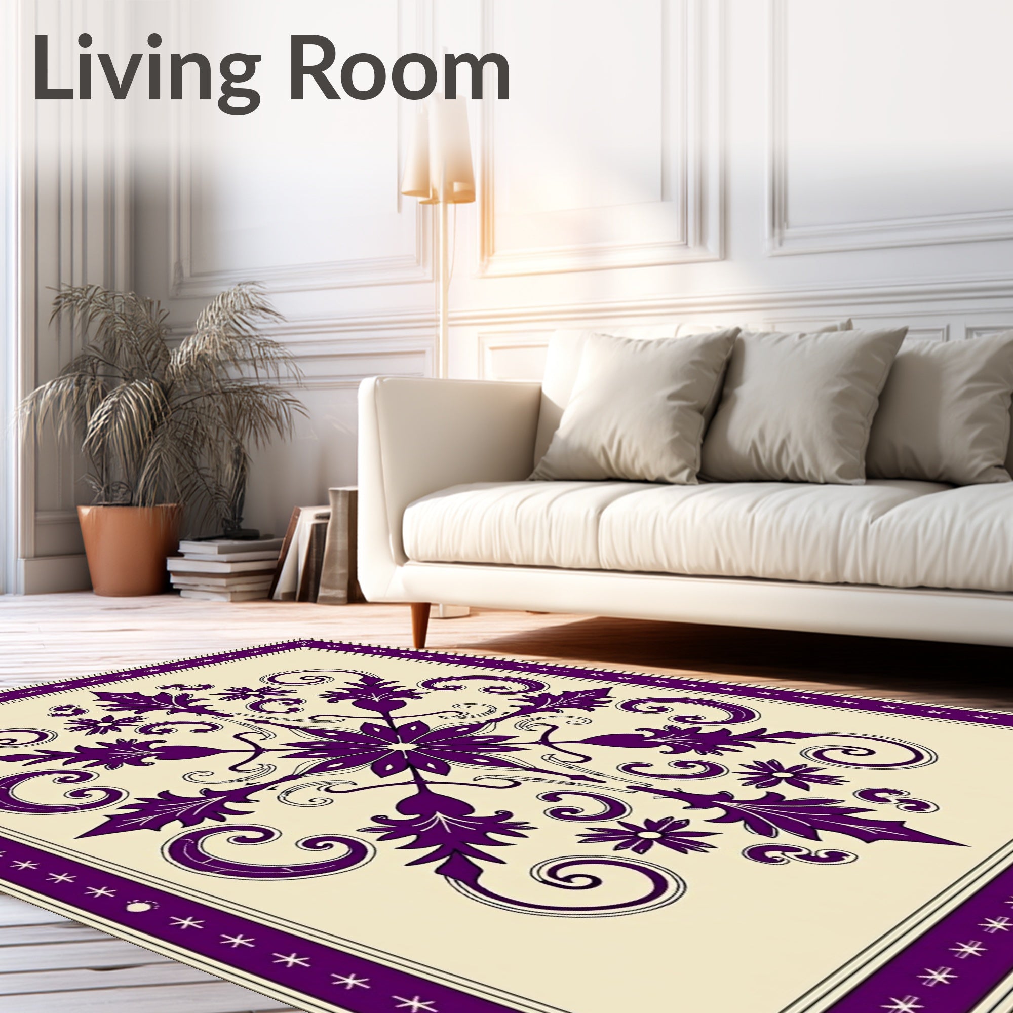Flatwoven High Traffic Area Rug, Mystic Garden Elegant Botanical Paisley, Non Slip, Stain Resistant, Washable Area Rugs for Living Room, Bedroom (Purple) Overview: