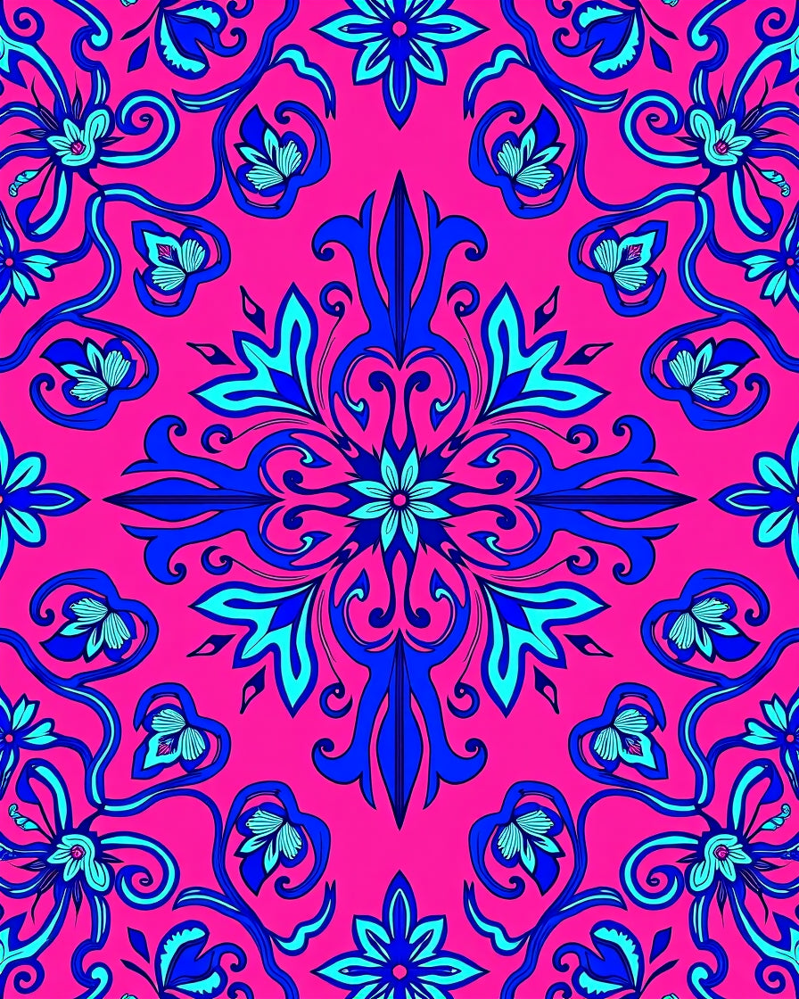 Mystic Garden with Interlocking Floral Tapestry and Whimsical Swirls (Pink)