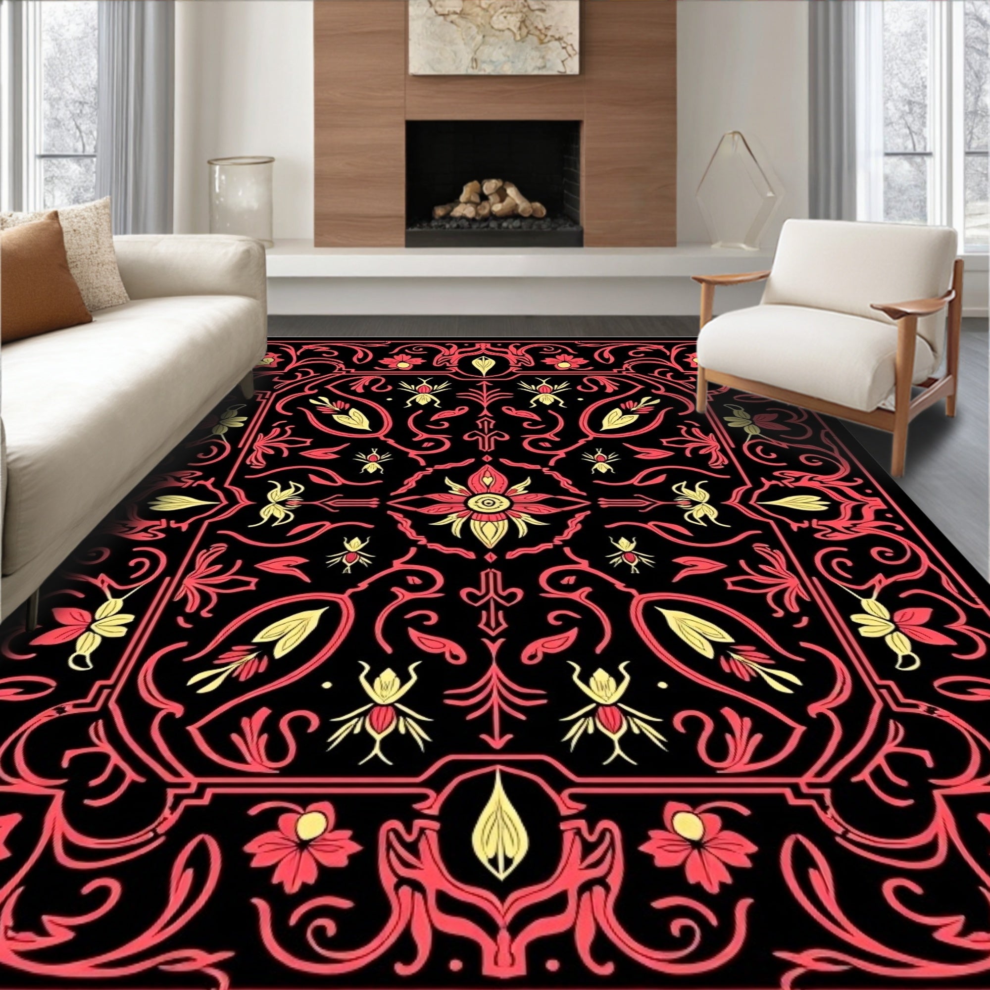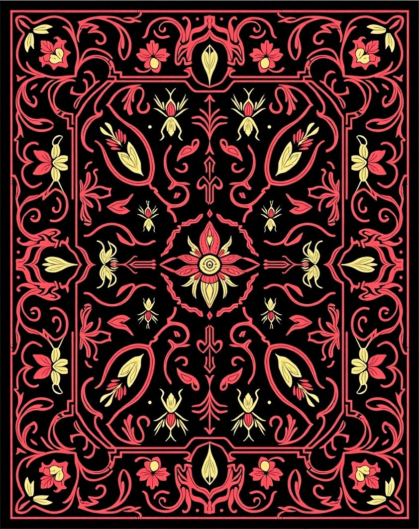 Flatwoven High Traffic Area Rug, Mystic Gothic Floral with Baroque Insects and Twisting Vines, Non Slip, Stain Resistant, Washable Area Rugs for Living Room, Bedroom (Black) Overview: