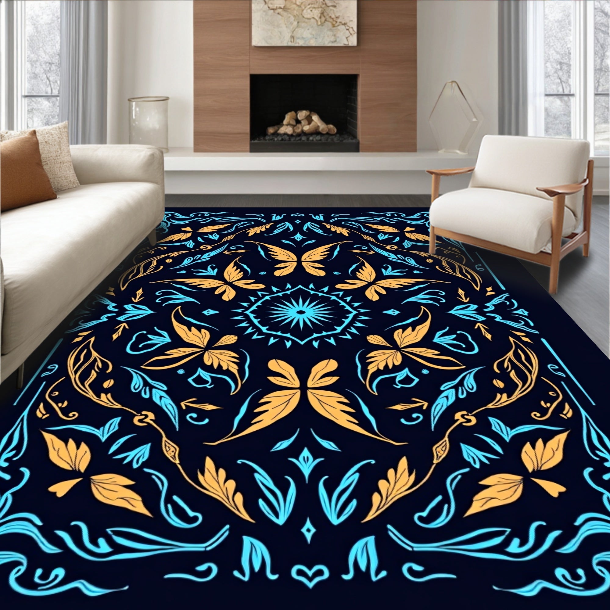 Flatwoven High Traffic Area Rug, Mystical Fauna Dreamscape, Non Slip, Stain Resistant, Washable Area Rugs for Living Room, Bedroom (Black) Overview: