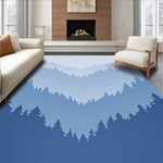 Flatwoven High Traffic Area Rug, Mystical Fog Mountain Valley Enchanted Misty Landscape Journey, Non Slip, Stain Resistant, Washable Area Rugs for Living Room, Bedroom (Blue) Overview:
