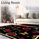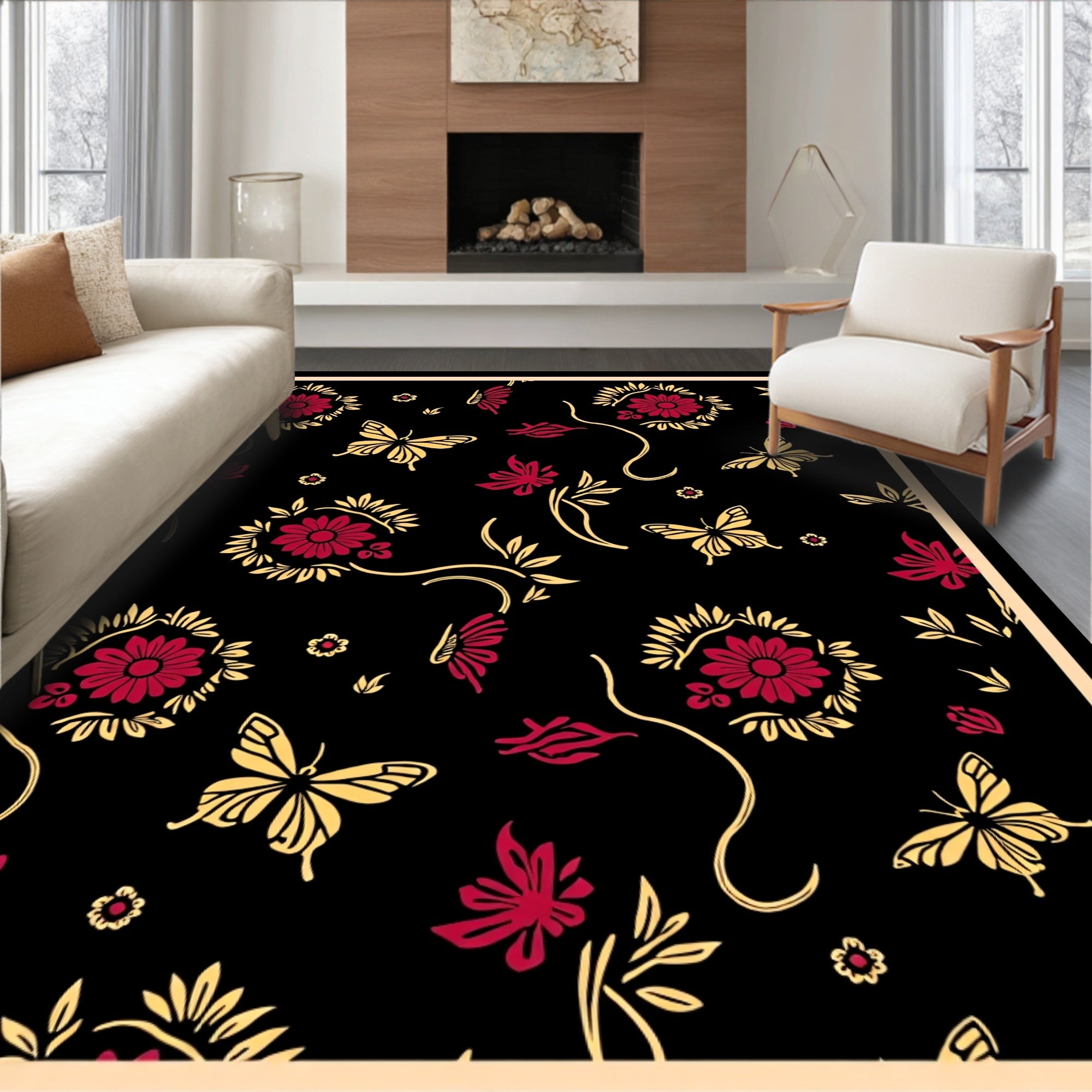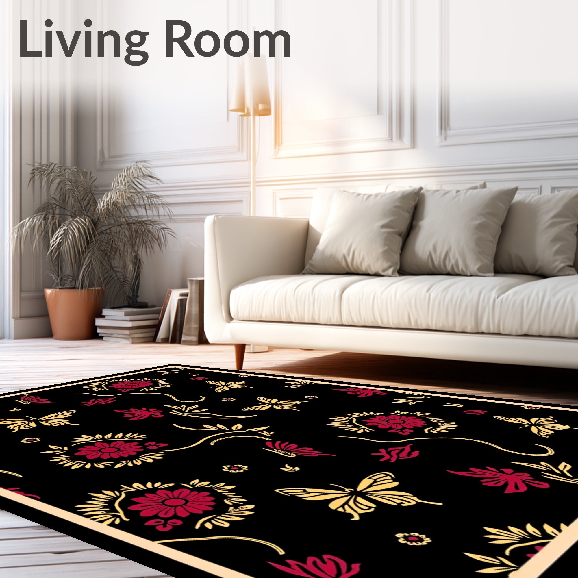 Flatwoven High Traffic Area Rug, Mystical Night Garden Monarch, Non Slip, Stain Resistant, Washable Area Rugs for Living Room, Bedroom (Black) Overview: