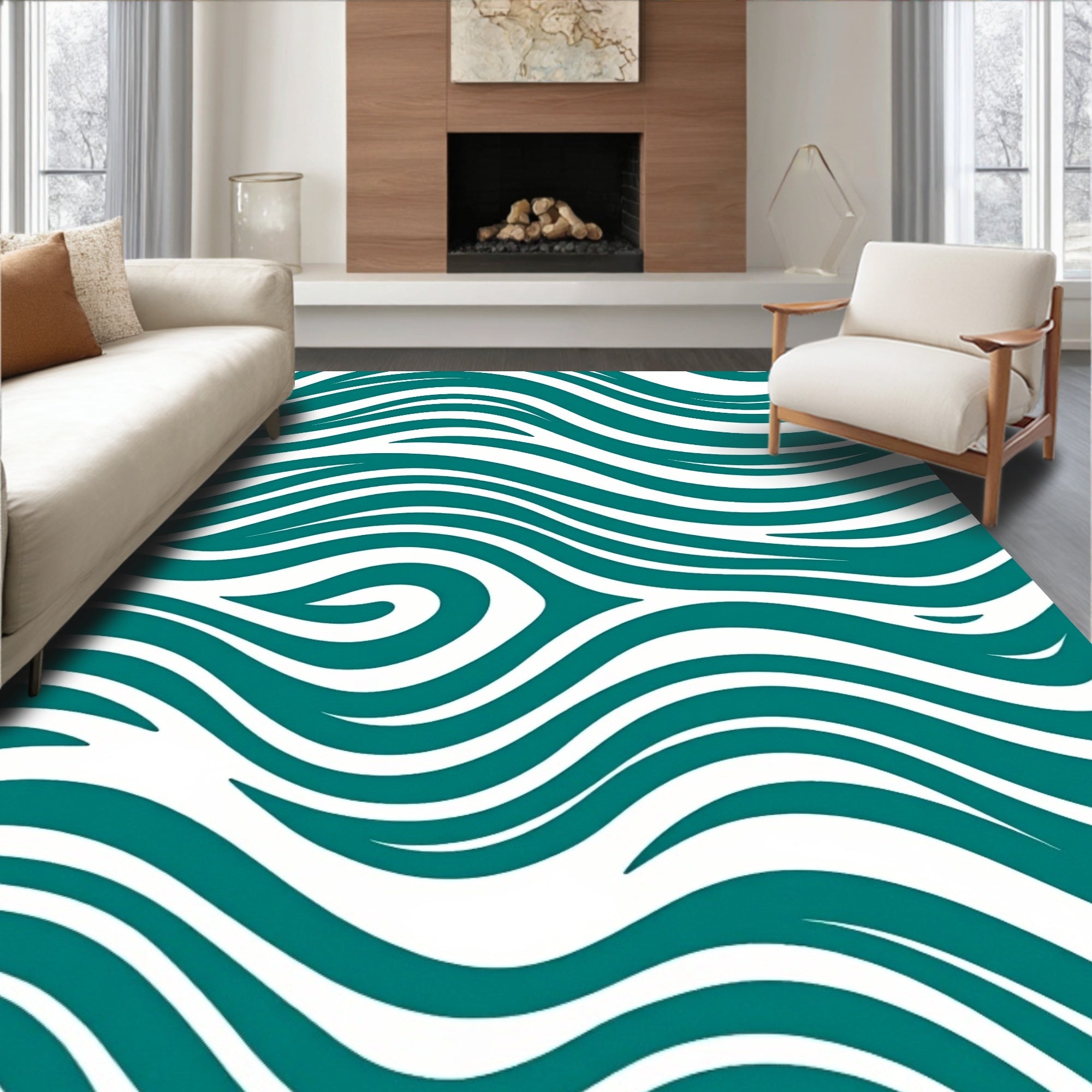 Flatwoven High Traffic Area Rug, Ocean Wave Ripple with Flowing Water Current Design, Non Slip, Stain Resistant, Washable Area Rugs for Living Room, Bedroom (Blue) Overview: