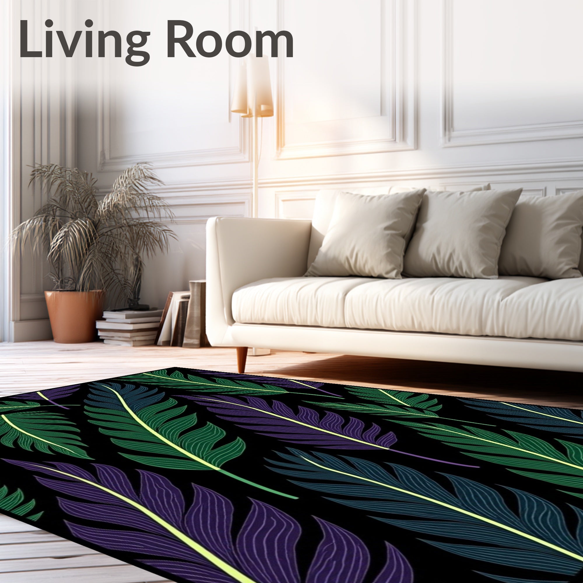 Flatwoven High Traffic Area Rug, Onyx Feather Plume Design Velvet Touch, Non Slip, Stain Resistant, Washable Area Rugs for Living Room, Bedroom (Black) Overview: