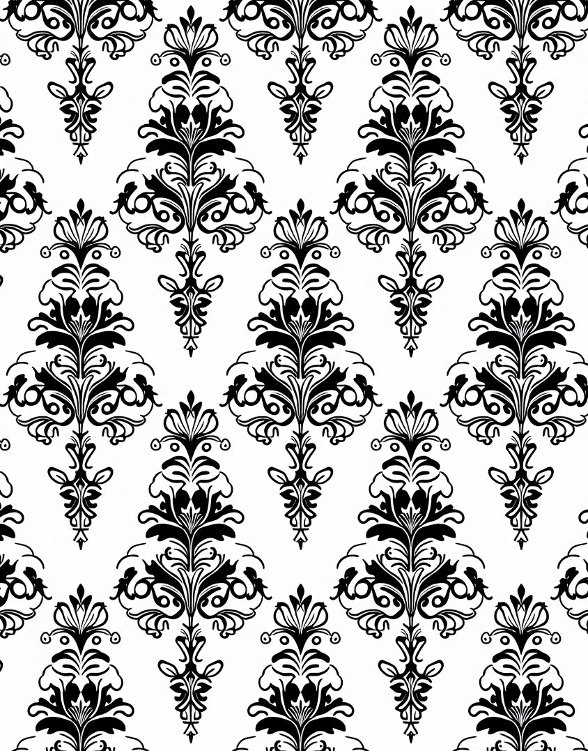 Ornate Floral Damask Baroque Sophisticated Symmetrical (Black)