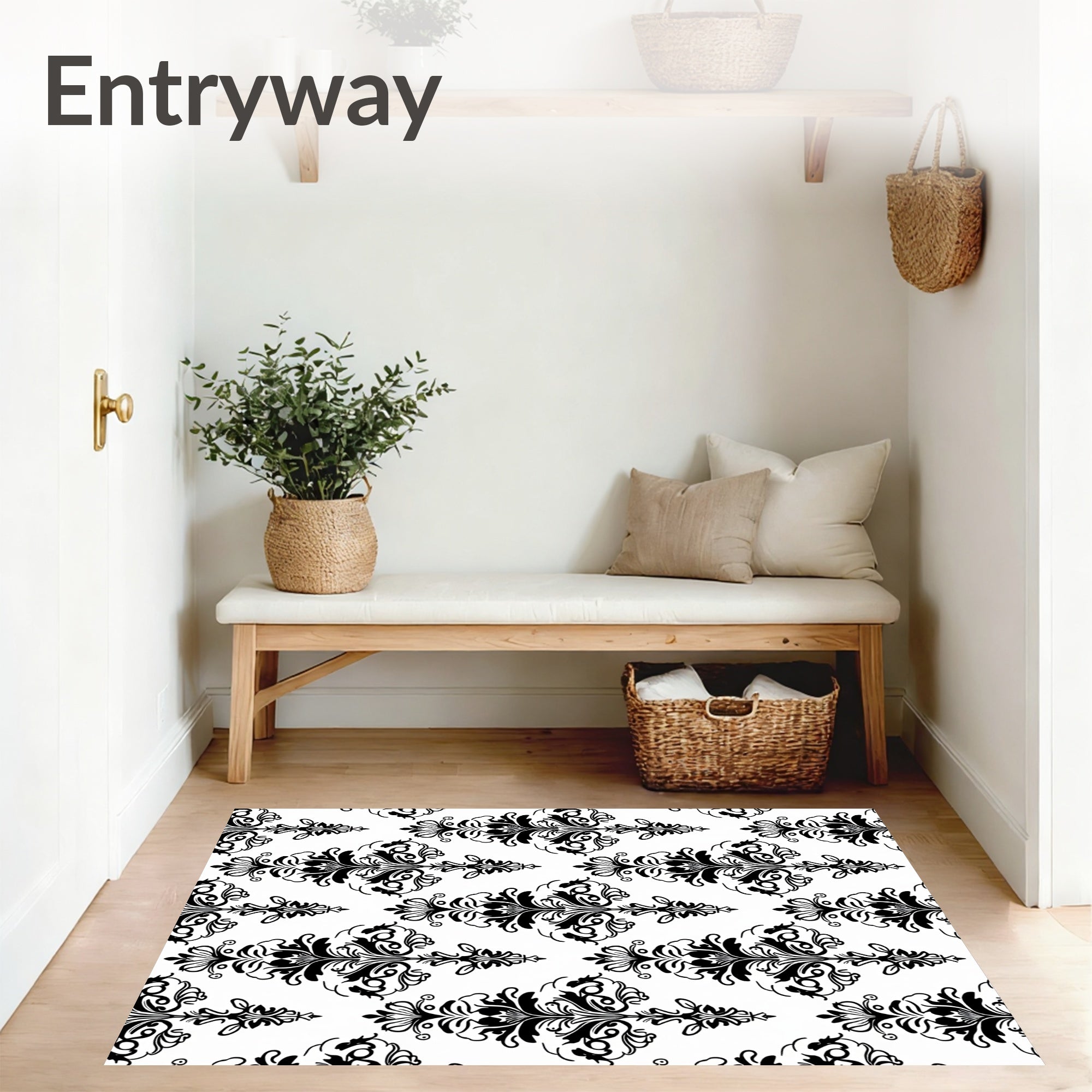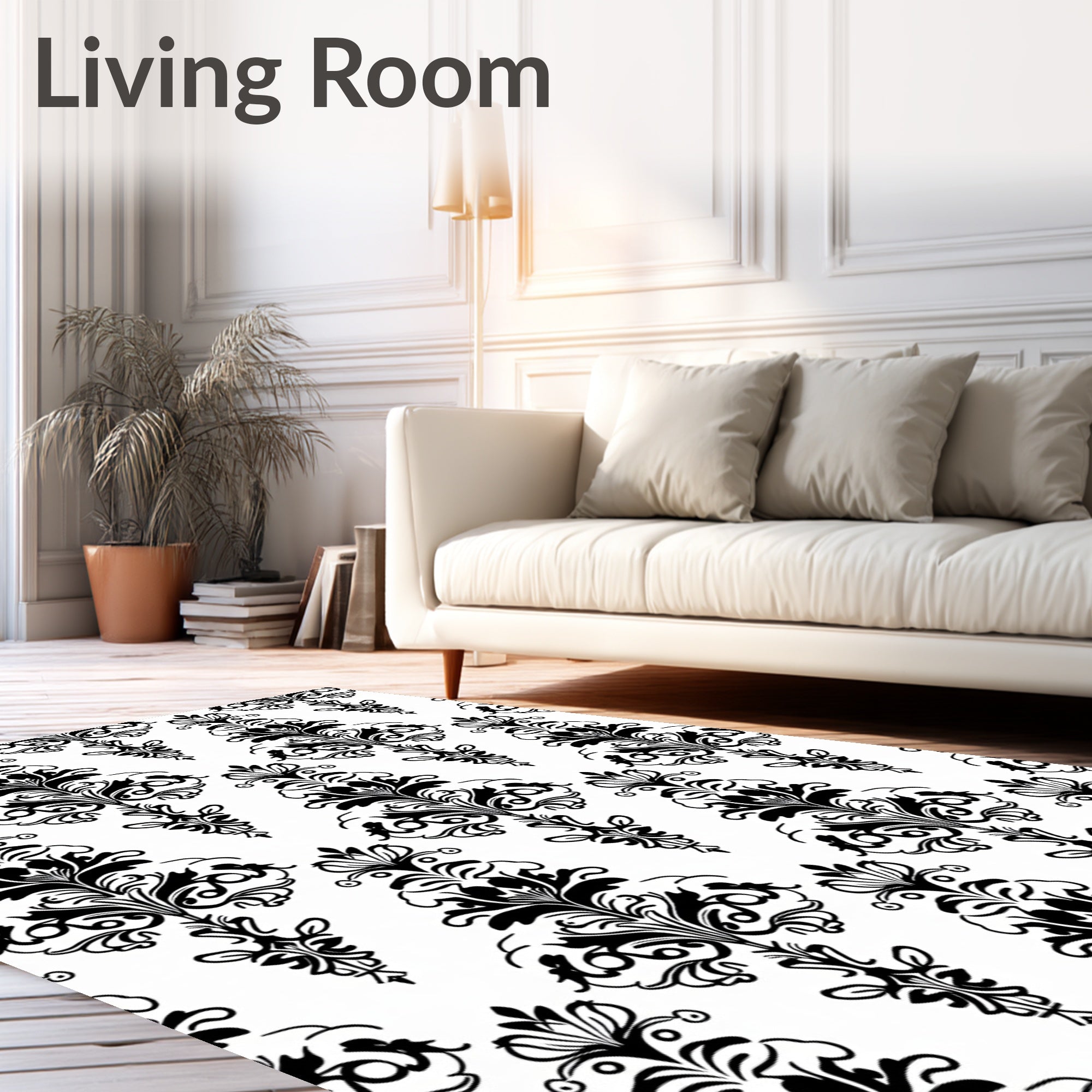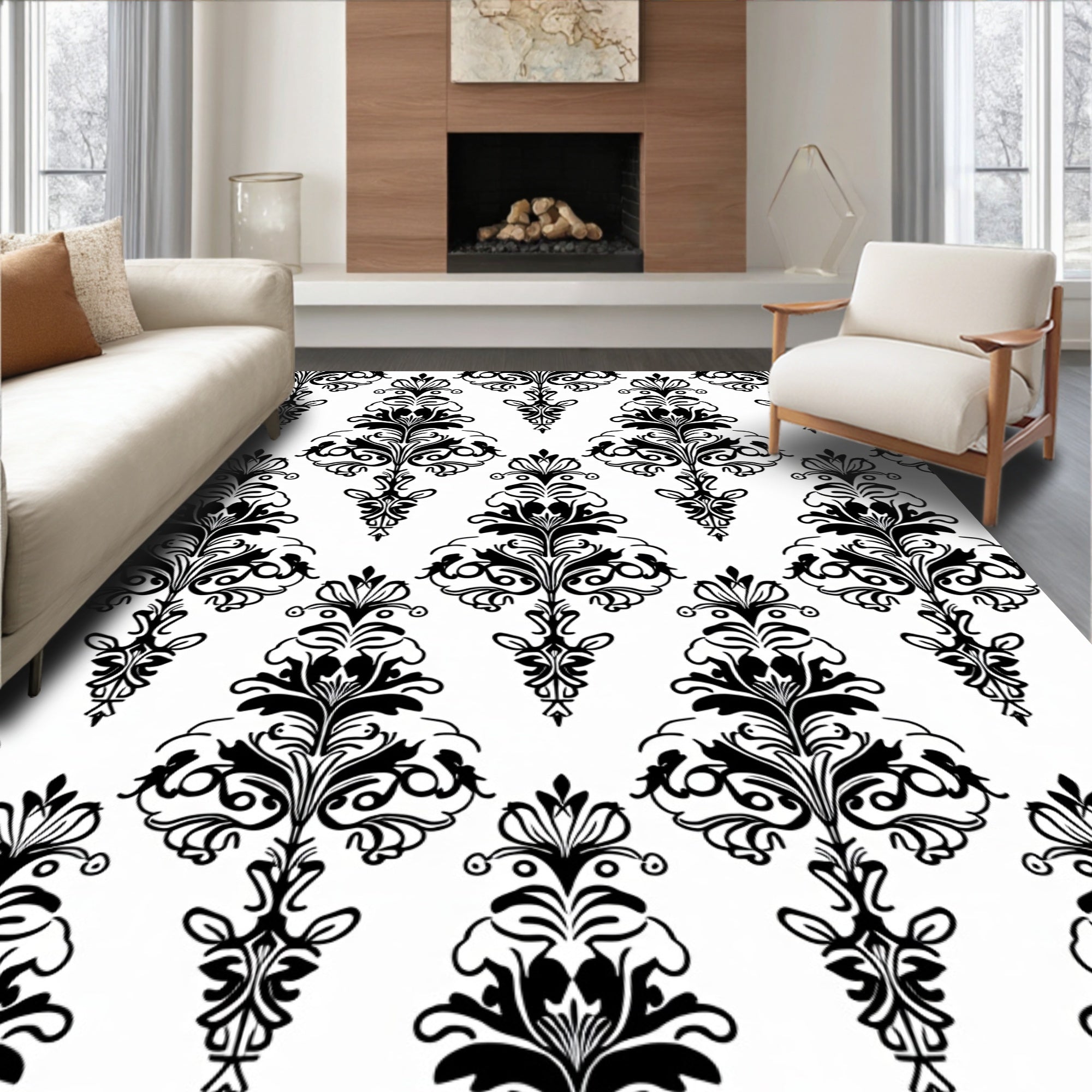 Flatwoven High Traffic Area Rug, Ornate Floral Damask Baroque Sophisticated Symmetrical, Non Slip, Stain Resistant, Washable Area Rugs for Living Room, Bedroom (Black) Overview: