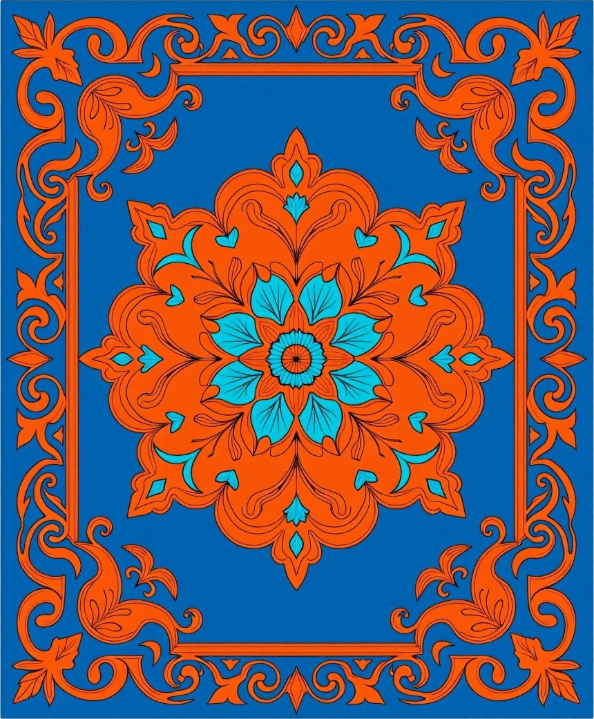 Ornate Motif with Baroque Floral Scrolls (Blue)