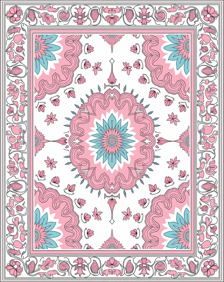 Ornate Trellis with Floral Lattice and Abstract Damask Accents (Pink)