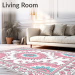 Flatwoven High Traffic Area Rug, Ornate Trellis with Floral Lattice and Abstract Damask Accents, Non Slip, Stain Resistant, Washable Area Rugs for Living Room, Bedroom (Pink) Overview: