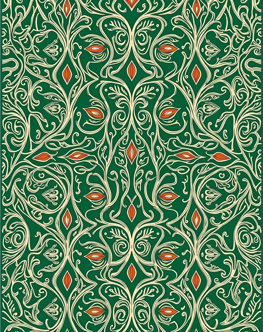 Paisley Swirl Cascade with Teardrop Flourish Motifs (Green)