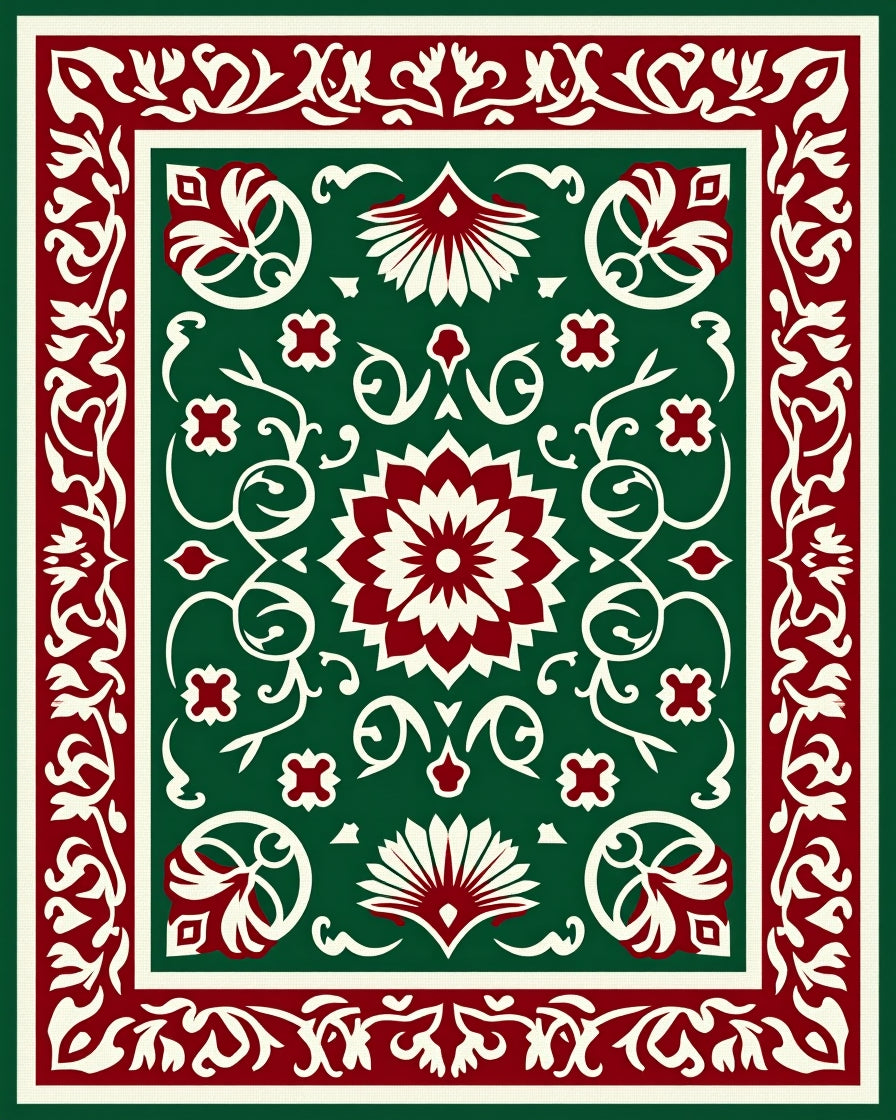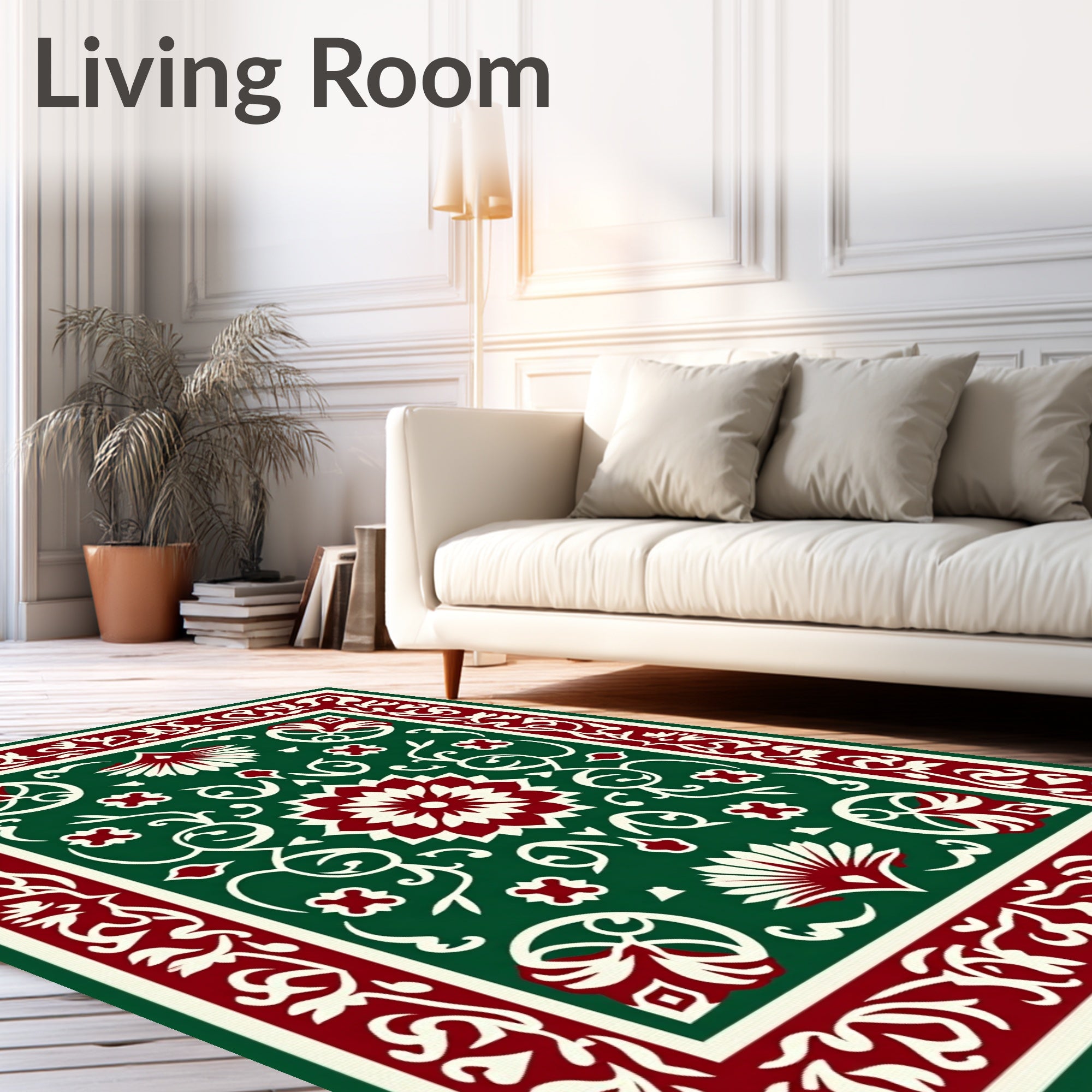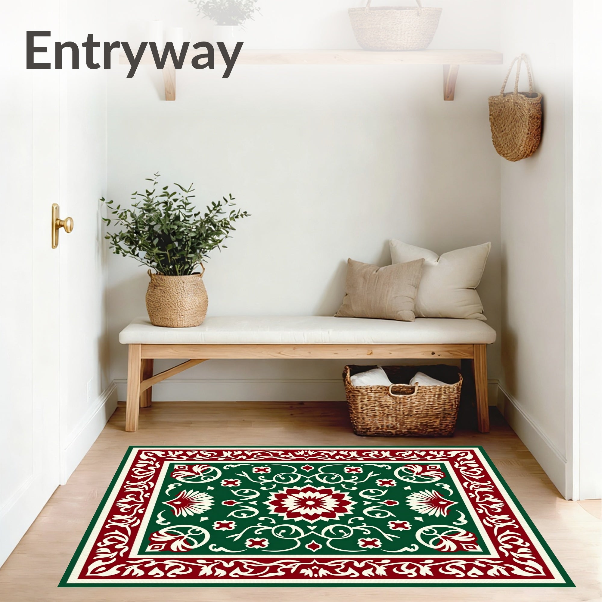 Flatwoven High Traffic Area Rug, Palmette Mosaic with Fanned Medallion Accents, Non Slip, Stain Resistant, Washable Area Rugs for Living Room, Bedroom (Green) Overview: