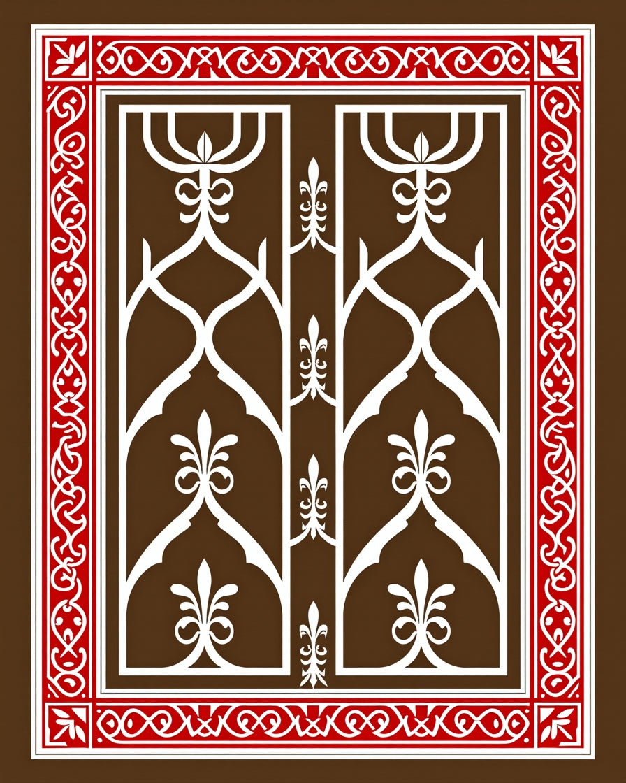 Parisian Archway Motif with Interlocking Chevron and Fleur De Accents (Brown)