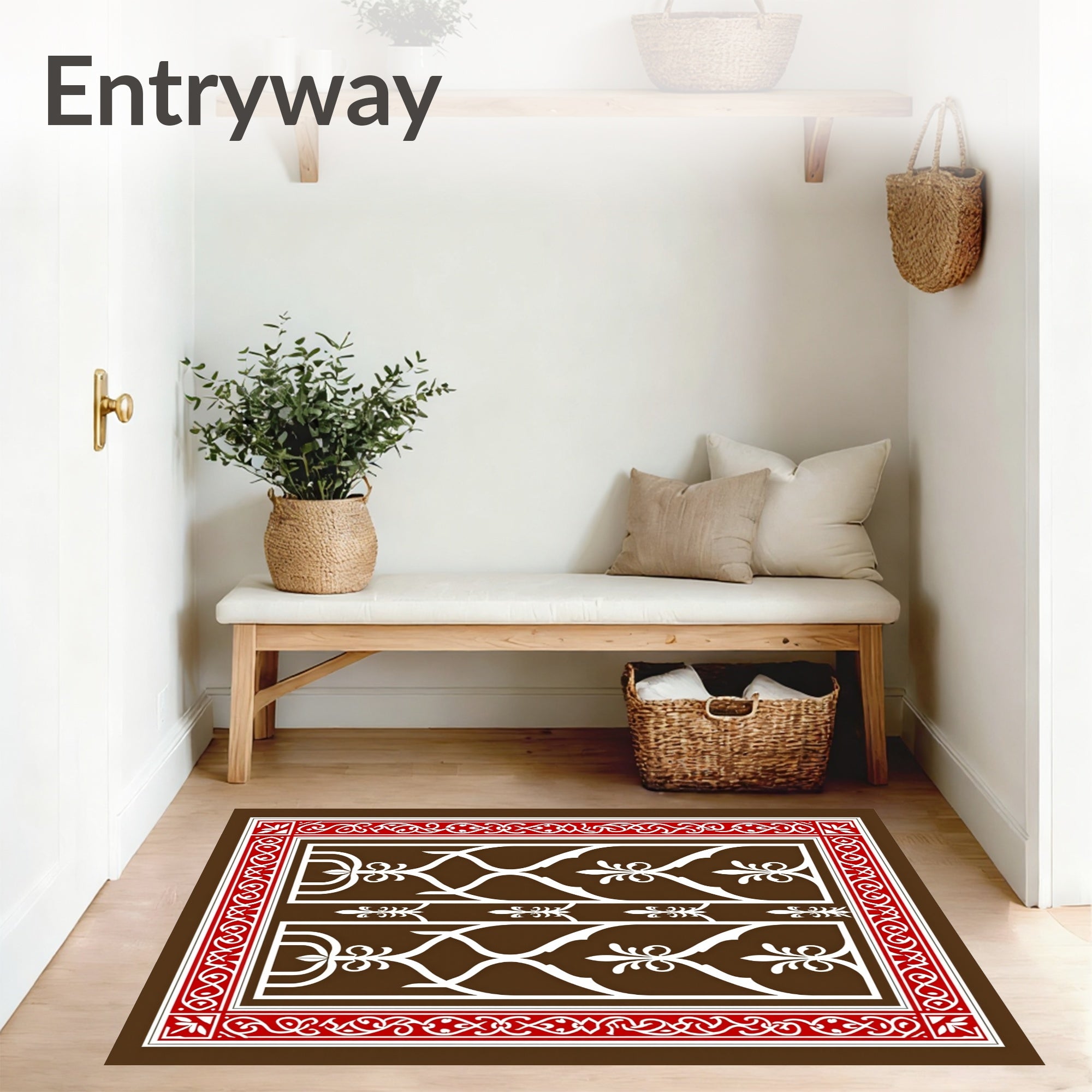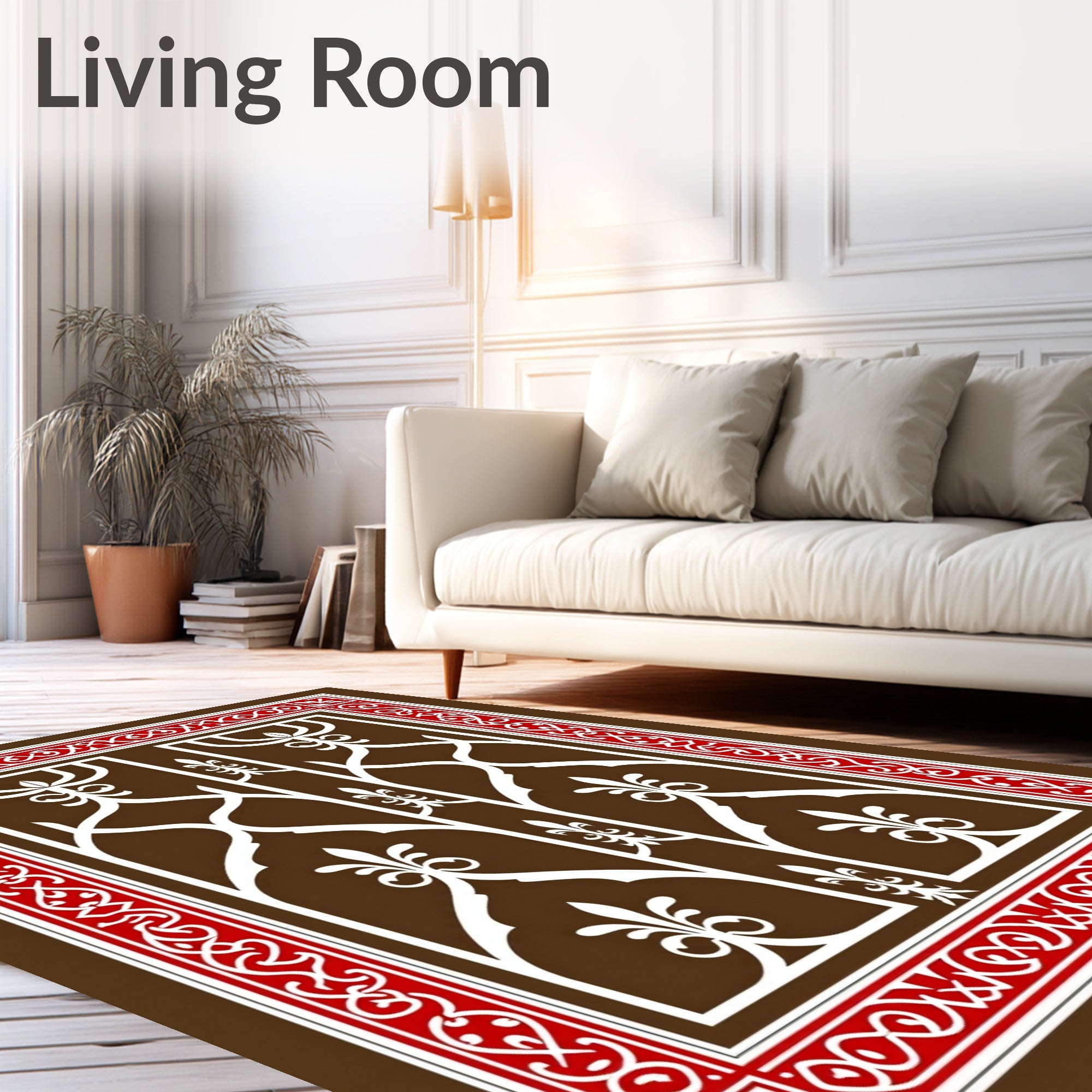 Flatwoven High Traffic Area Rug, Parisian Archway Motif with Interlocking Chevron and Fleur De Accents, Non Slip, Stain Resistant, Washable Area Rugs for Living Room, Bedroom (Brown) Overview: