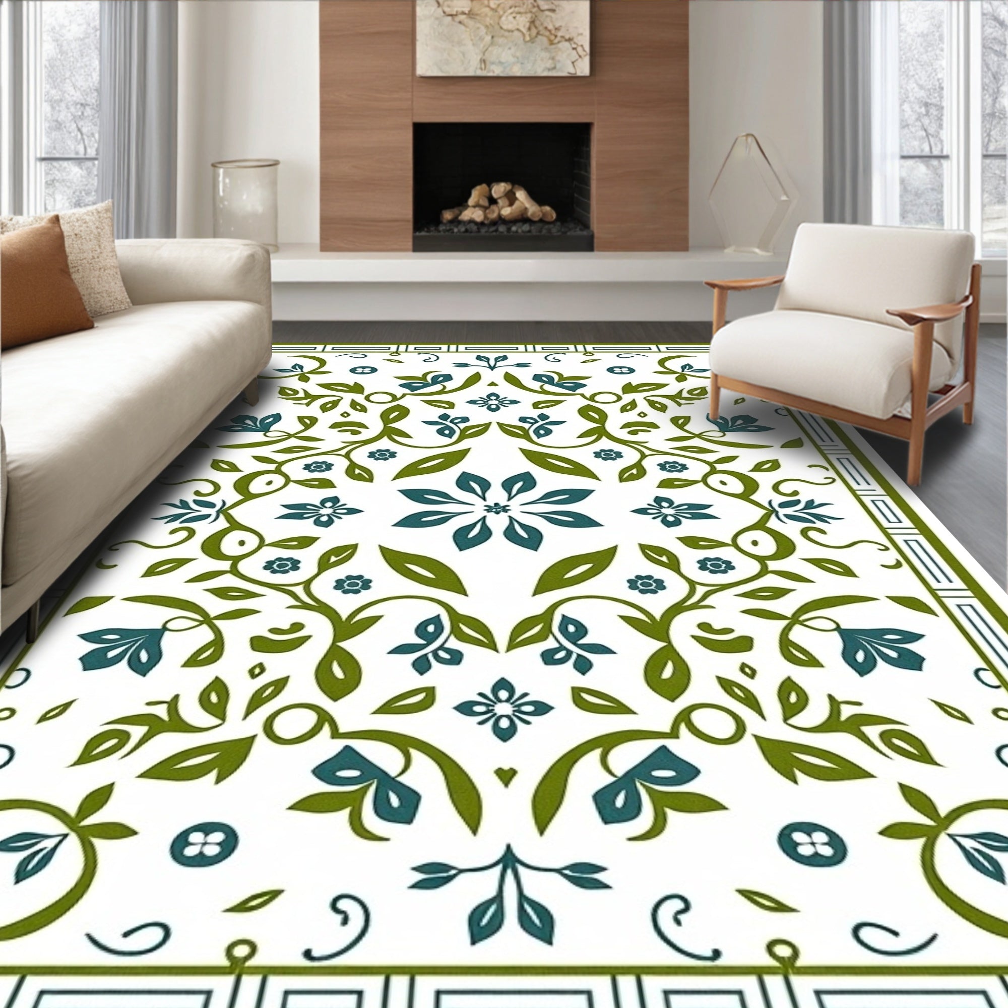 Flatwoven High Traffic Area Rug, Plant Mosaic Blossom with Ornate Botanical Detailing, Non Slip, Stain Resistant, Washable Area Rugs for Living Room, Bedroom (White) Overview: