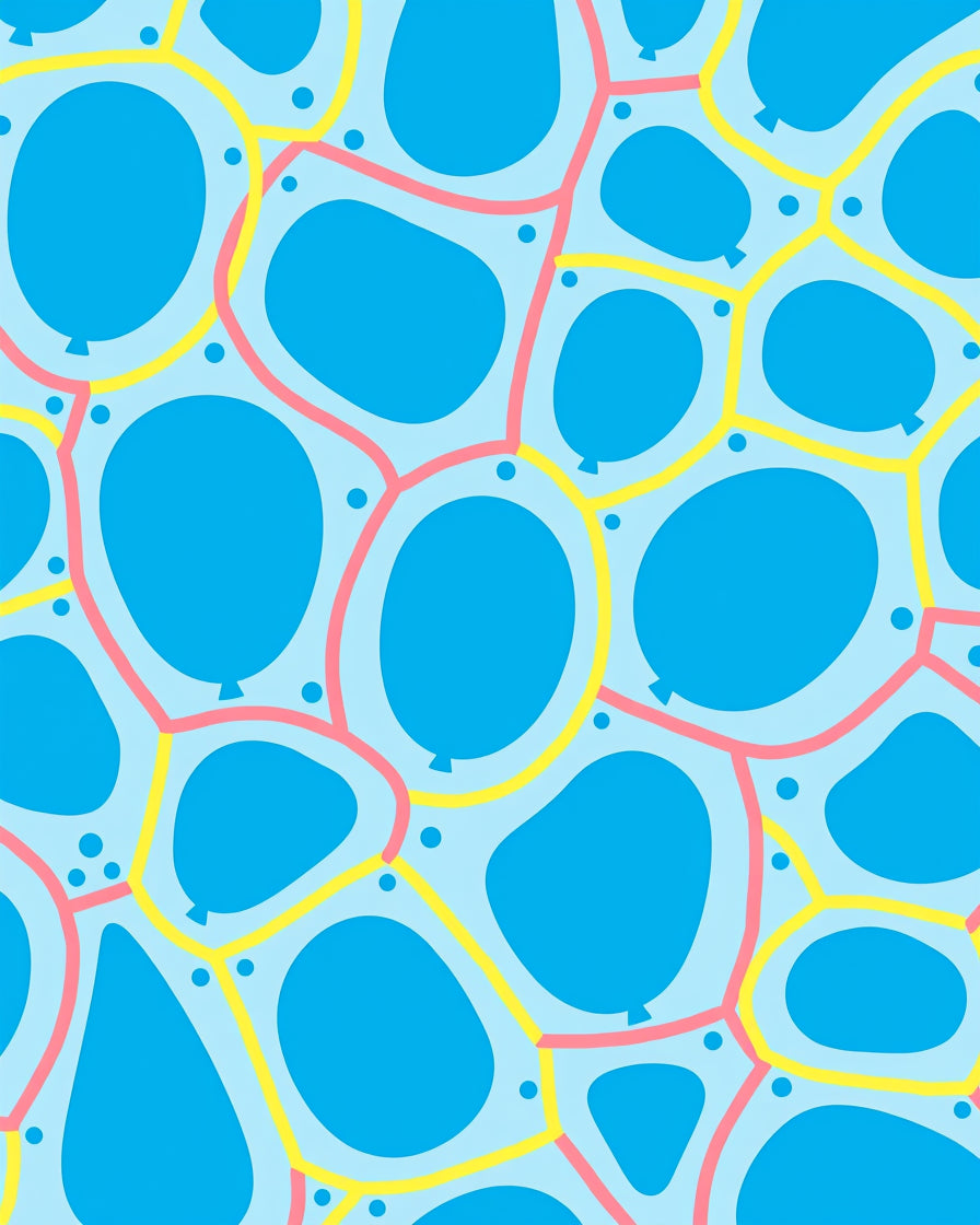 Playful Floating Balloon Motif with Interlocking Twisting Ribbons (Blue)