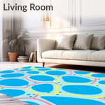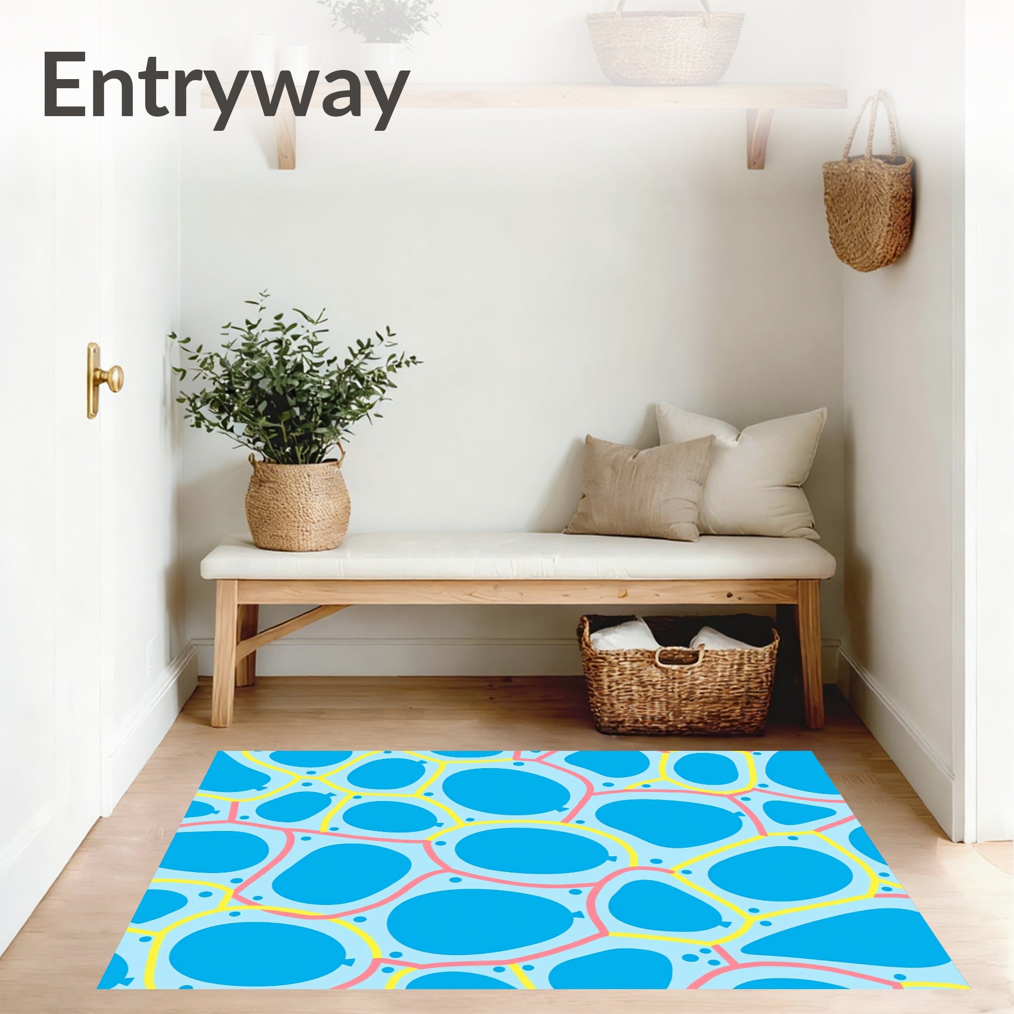 Flatwoven High Traffic Area Rug, Playful Floating Balloon Motif with Interlocking Twisting Ribbons, Non Slip, Stain Resistant, Washable Area Rugs for Living Room, Bedroom (Blue) Overview: