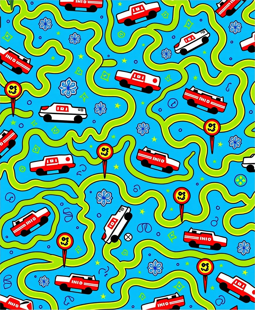 Playful Roadway Adventure Featuring Animated Rescue Vehicles and Trails (Blue)