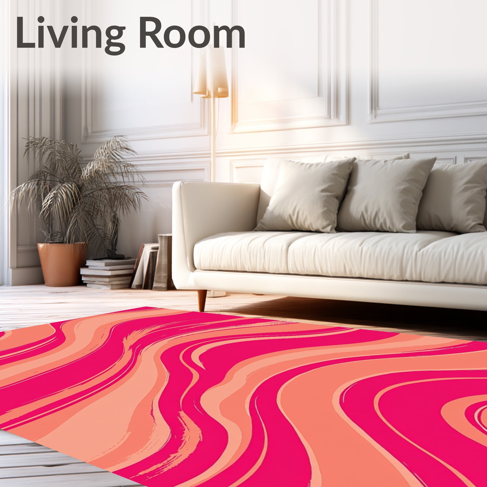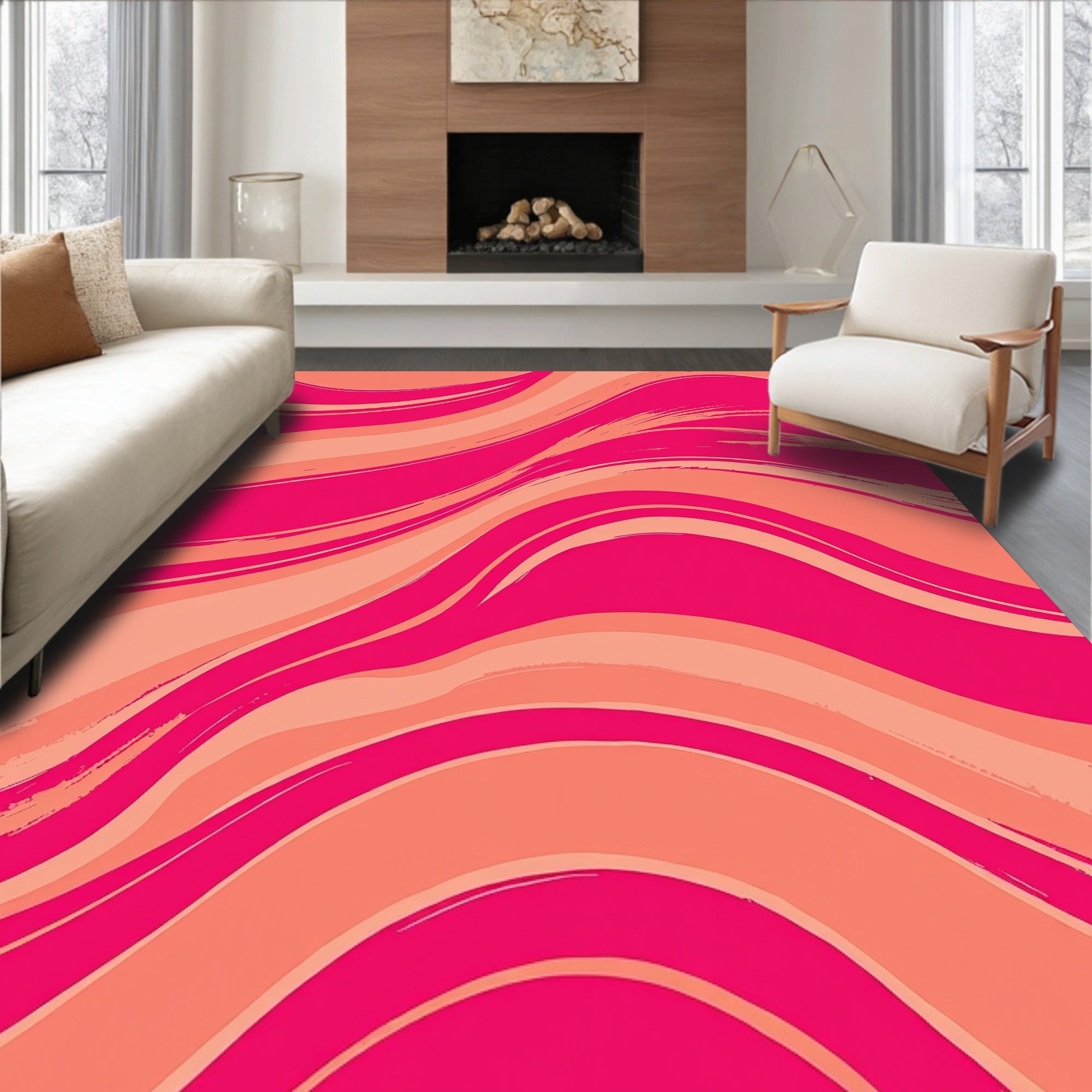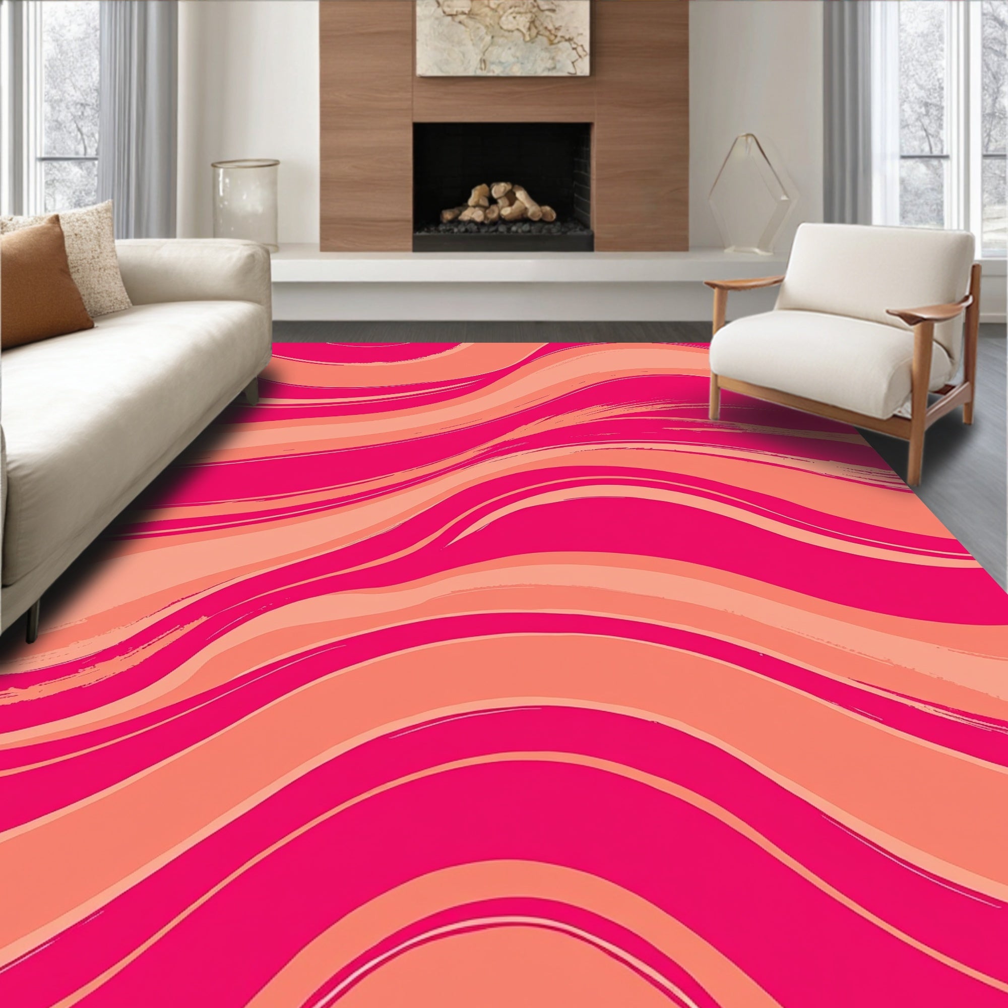 Flatwoven High Traffic Area Rug, Radiant Sunset Wave, Non Slip, Stain Resistant, Washable Area Rugs for Living Room, Bedroom (Pink) Overview: