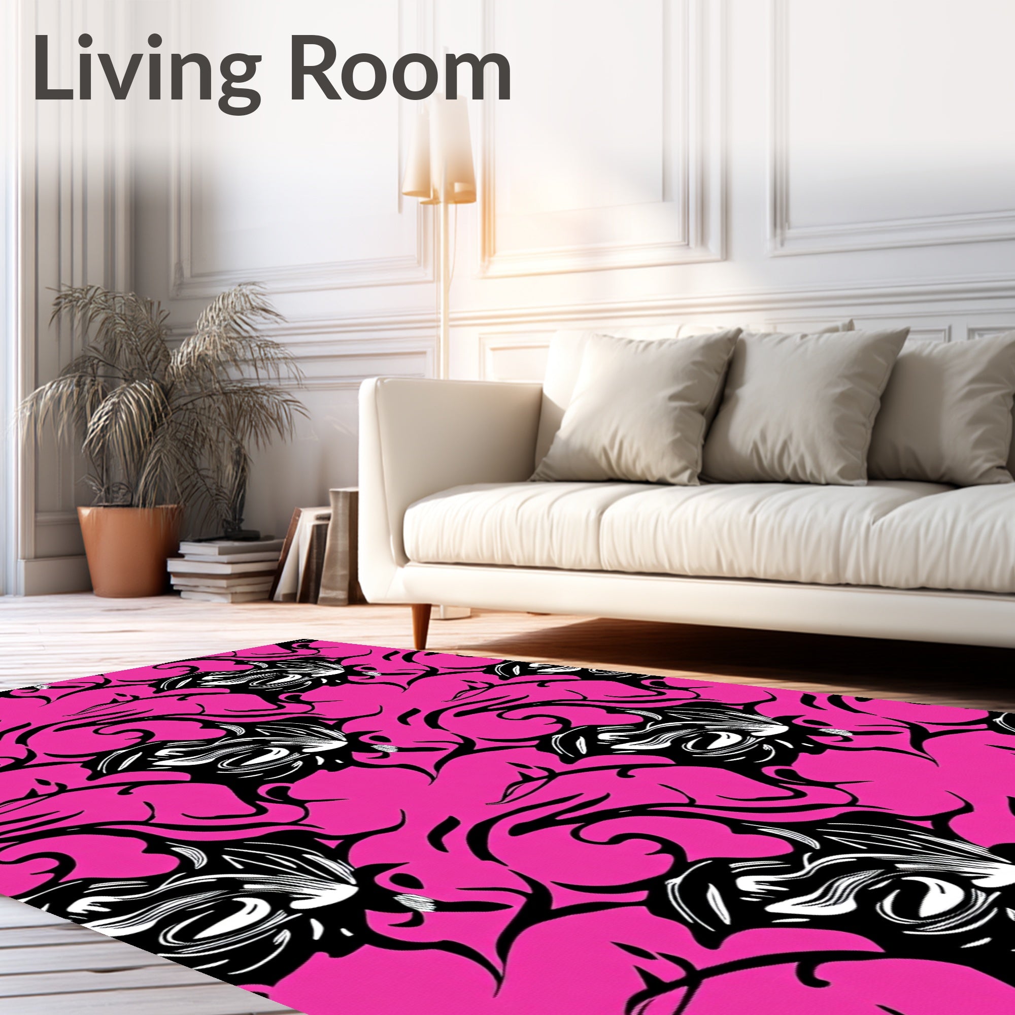 Flatwoven High Traffic Area Rug, Raven Feather Swirl Spiral Motion Contemporary Accent, Non Slip, Stain Resistant, Washable Area Rugs for Living Room, Bedroom (Pink) Overview: