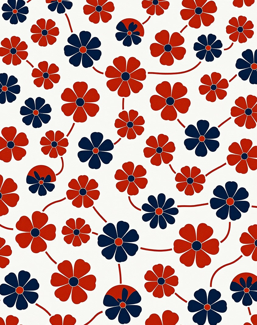 Retro Abstract Botanical Featuring Interlocking Petal Motifs (Red)