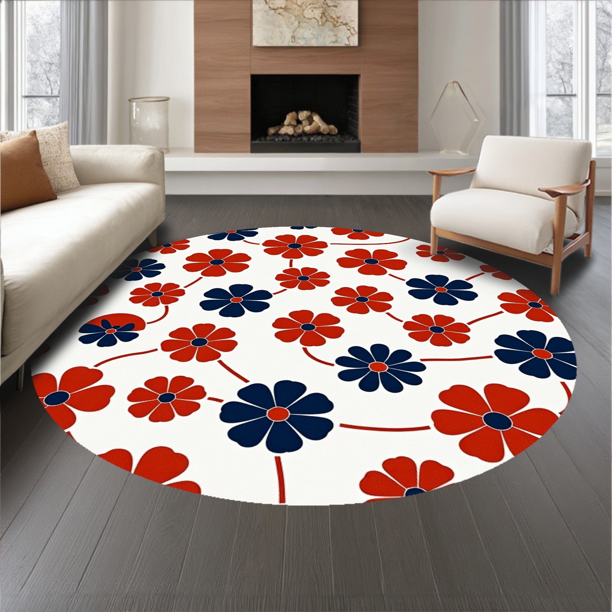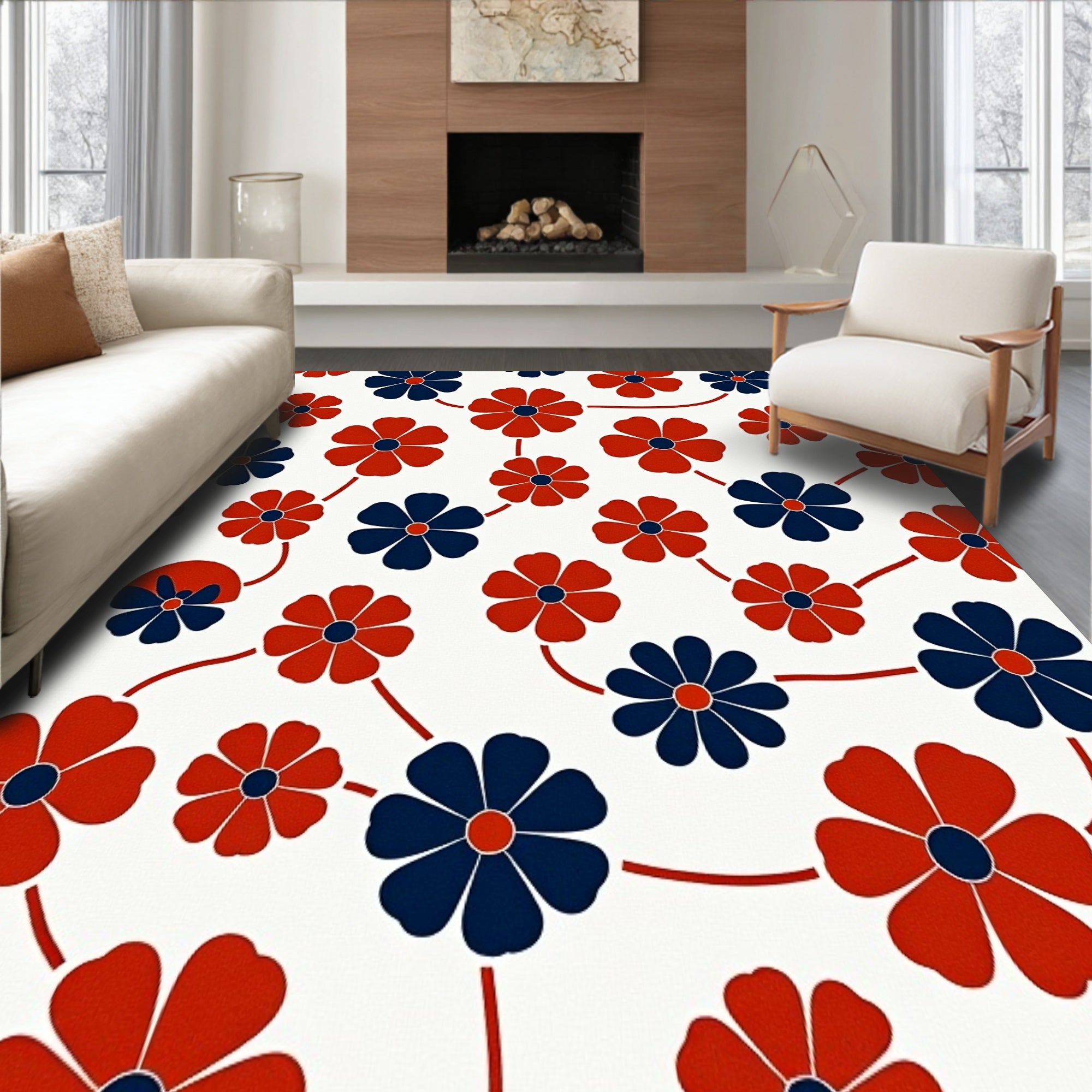 Flatwoven High Traffic Area Rug, Retro Abstract Botanical Featuring Interlocking Petal Motifs, Non Slip, Stain Resistant, Washable Area Rugs for Living Room, Bedroom (Red) Overview: