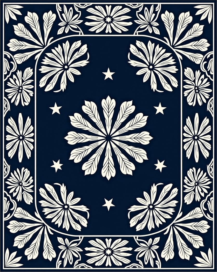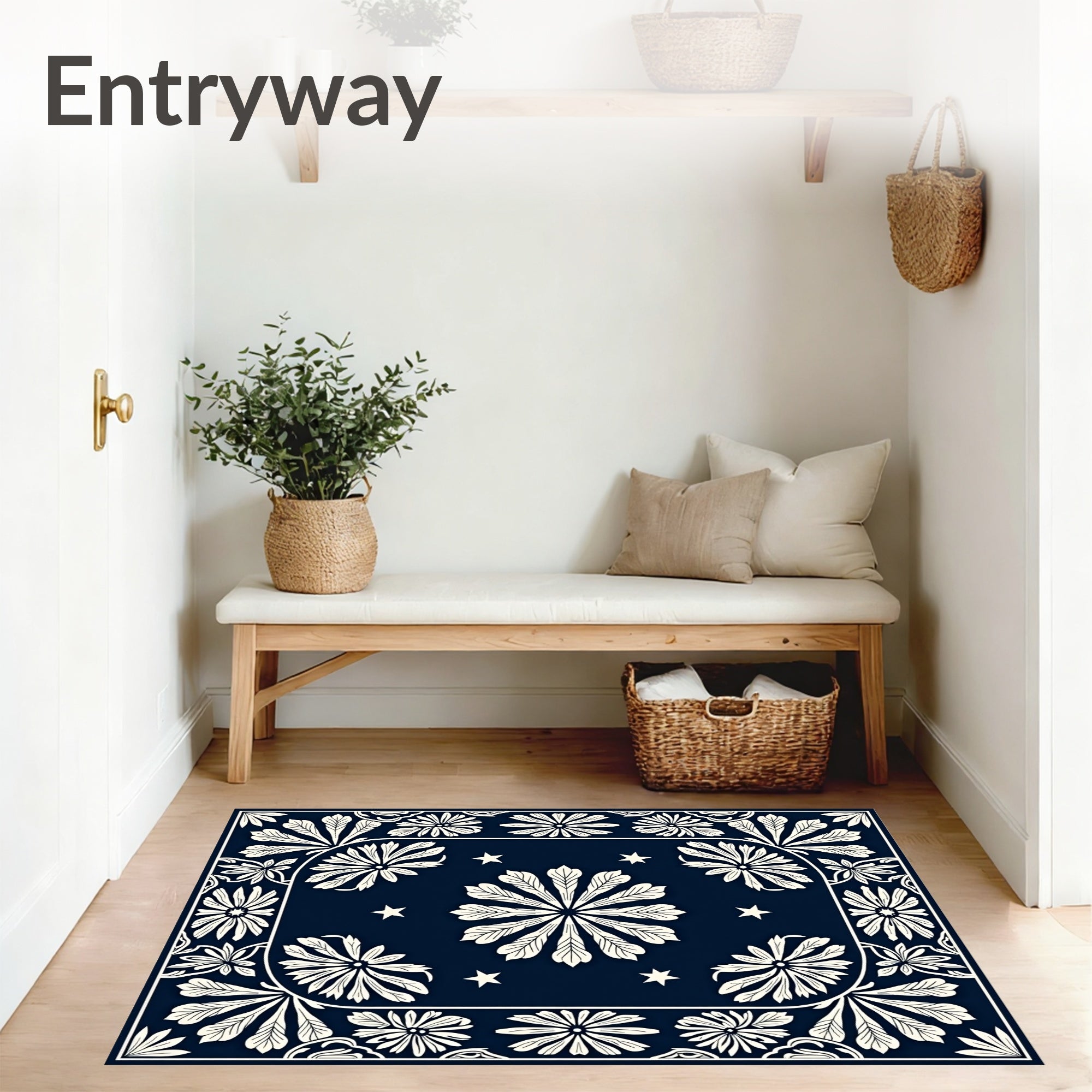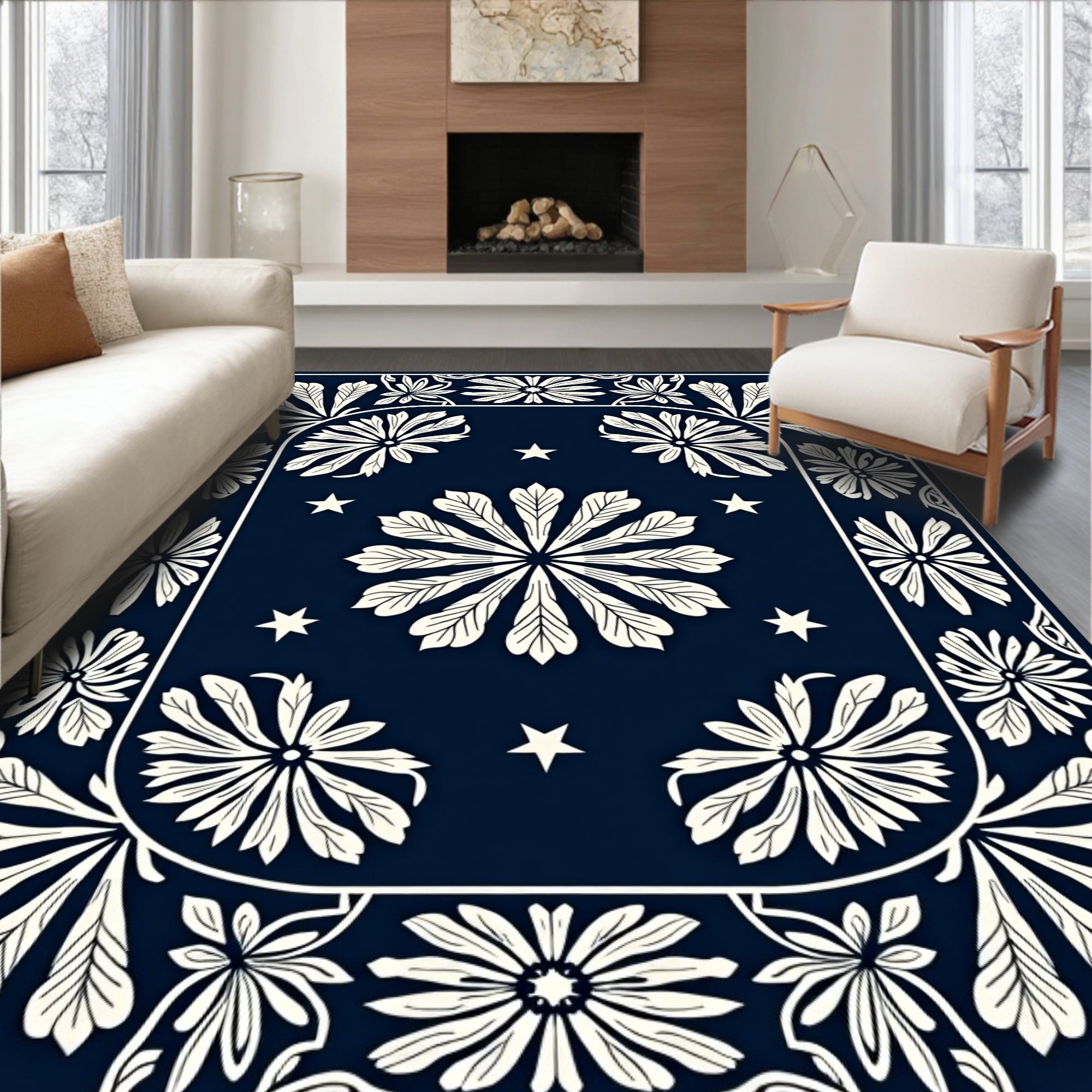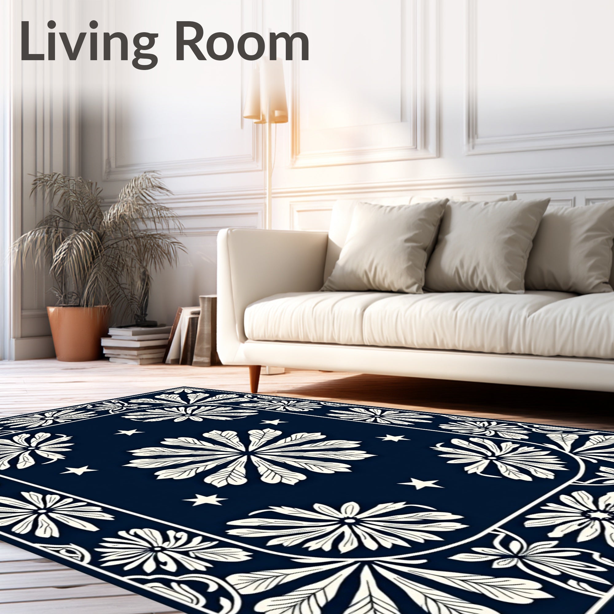 Flatwoven High Traffic Area Rug, Retro Bloom Constellation Motif With Inspiration, Non Slip, Stain Resistant, Washable Area Rugs for Living Room, Bedroom (Blue) Overview: