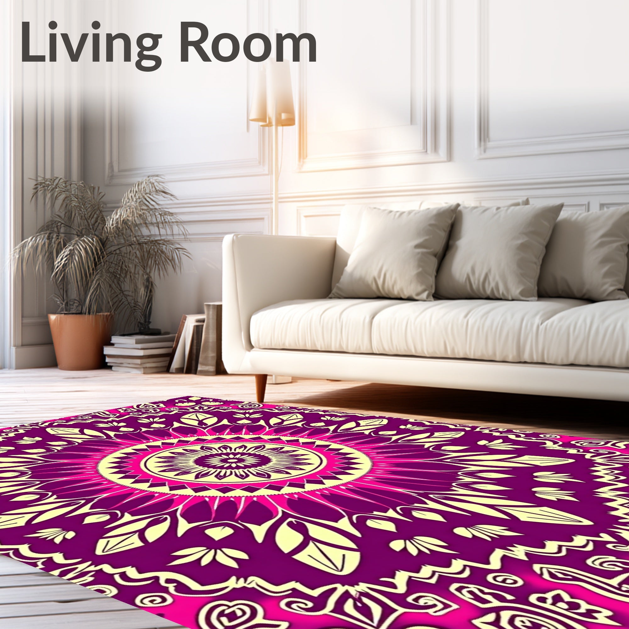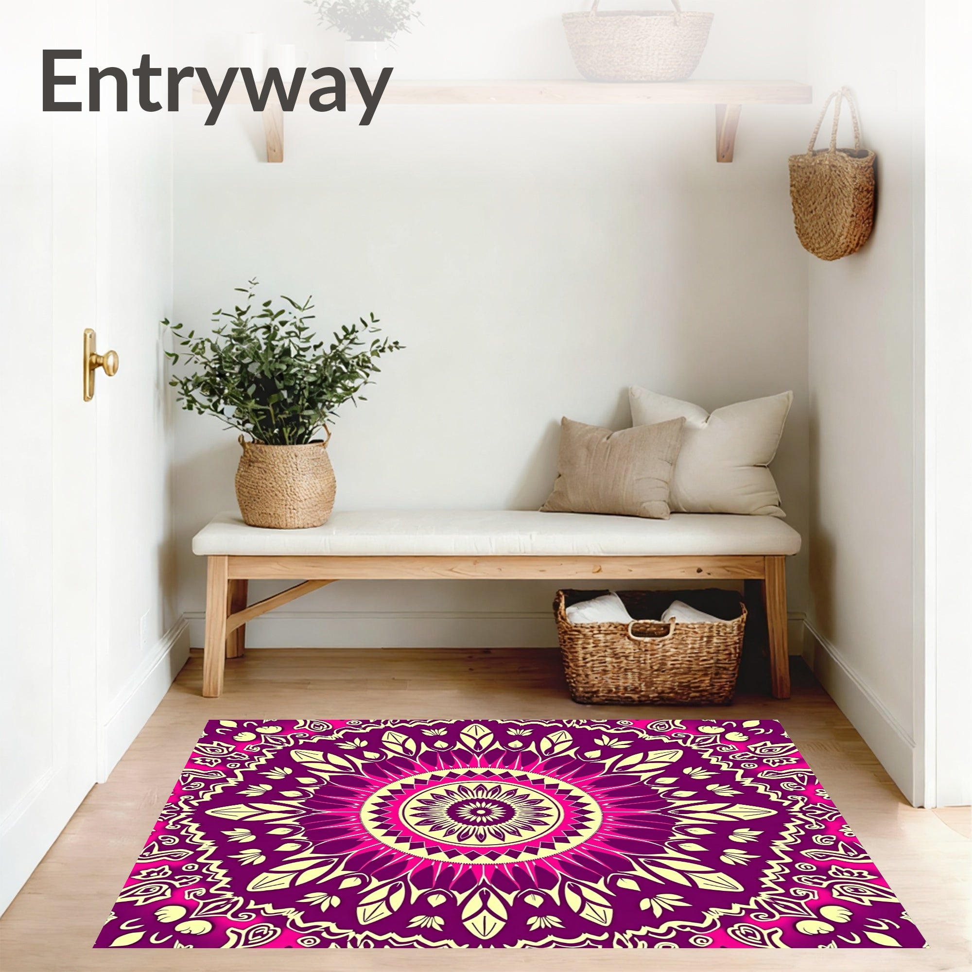 Flatwoven High Traffic Area Rug, Retro Boho Flower Burst Non Shedding Throw, Non Slip, Stain Resistant, Washable Area Rugs for Living Room, Bedroom (Purple) Overview: