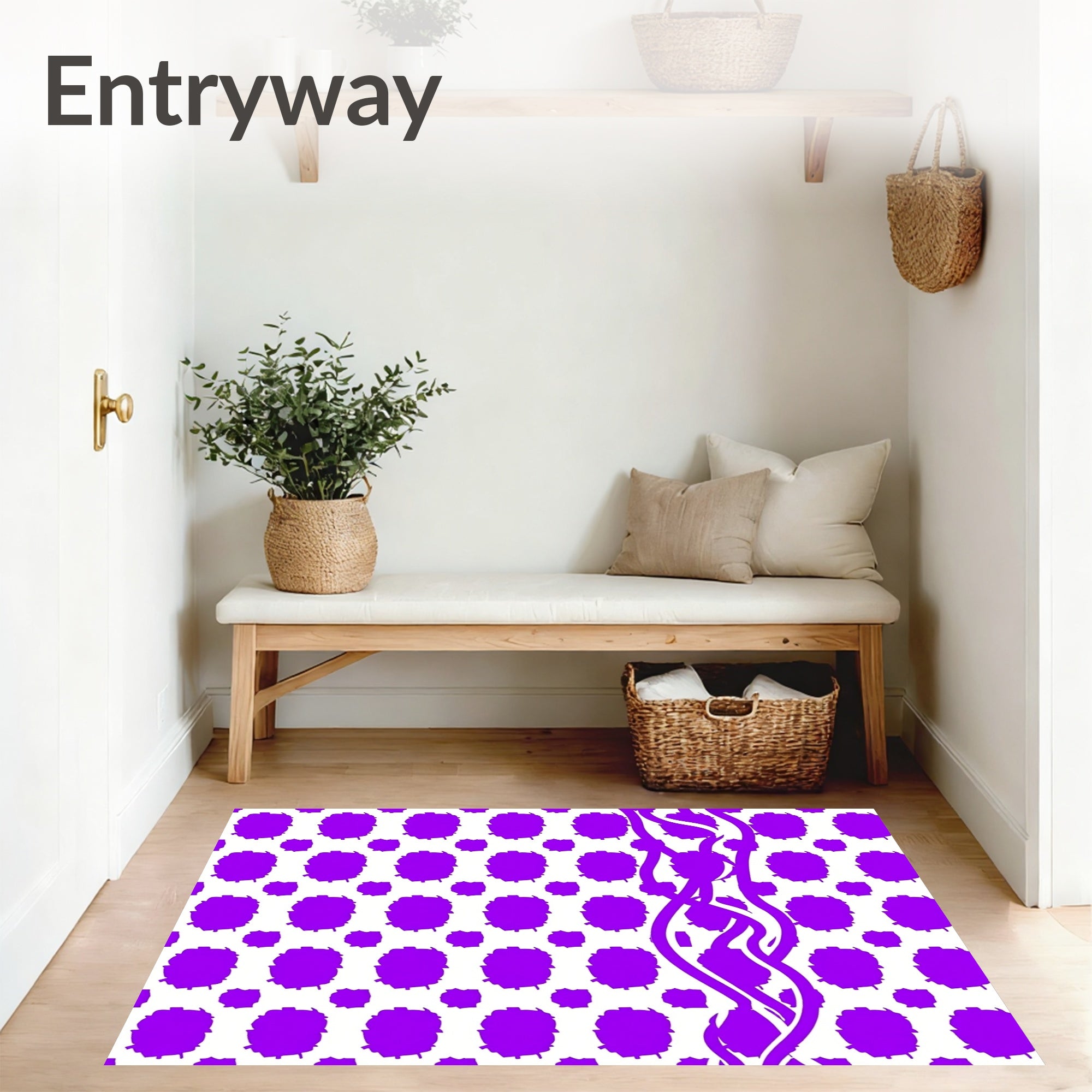Flatwoven High Traffic Area Rug, Retro Checkerboard Maze with Abstract Modern Twist, Non Slip, Stain Resistant, Washable Area Rugs for Living Room, Bedroom (Purple) Overview:
