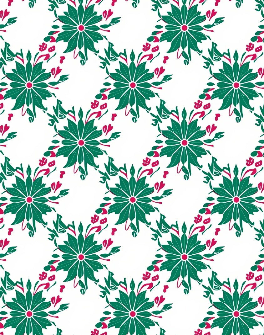 Retro Lattice Blossom with Interlocking Leaf and Floral Array (Green)